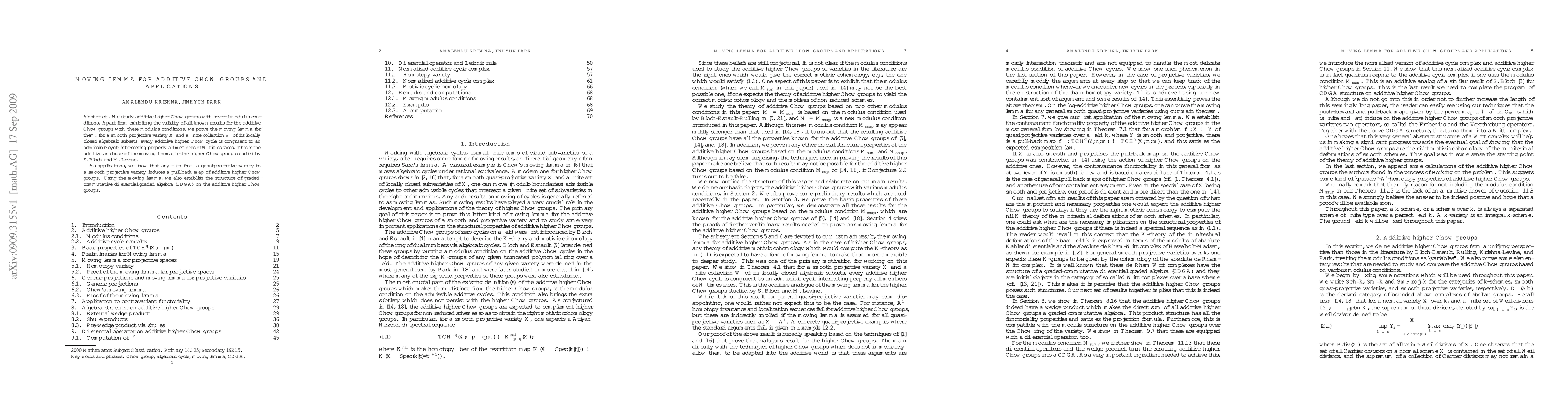 The novelty of this work is in combining the moving lemma with additive Chow groups, leading to a deeper understanding of their algebraic structure and contravariance properties, which was not previously explored in this context.