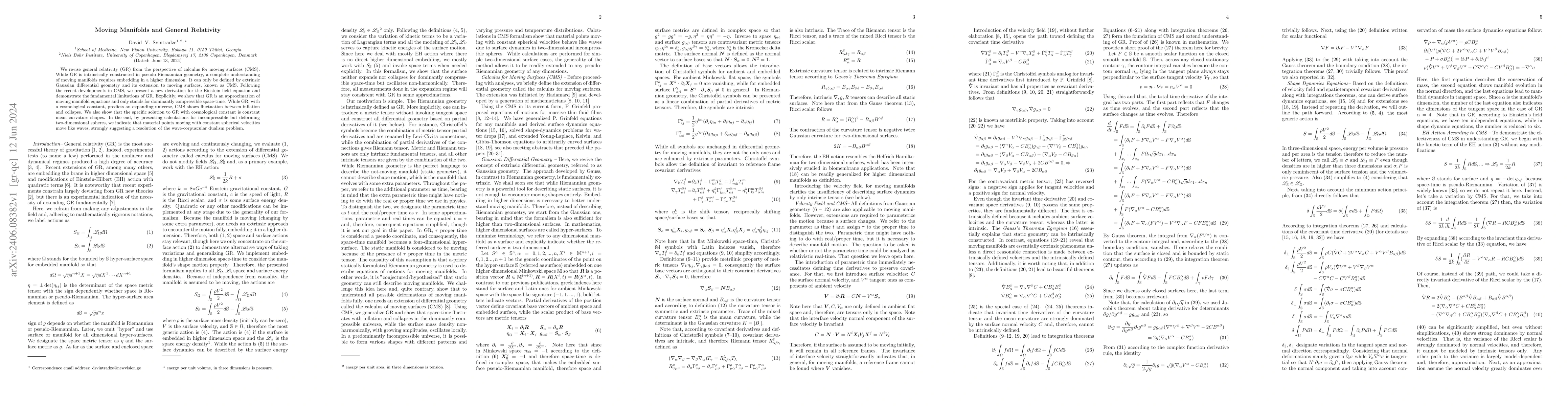 This paper reframes general relativity through calculus for moving surfaces, showing it is an approximation of more complex moving manifold equations. It suggests that while GR predicts an expanding universe, moving manifold theory indicates fluctuations between inflation and collapse, offering a potential resolution to the wave-corpuscular dualism problem.