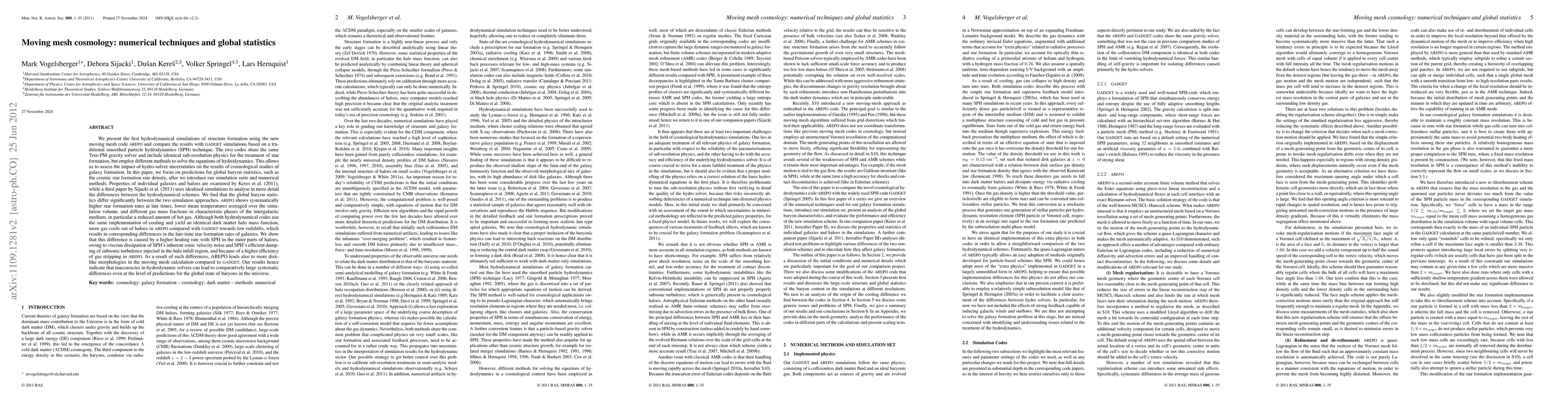 We present the first hydrodynamical simulations of structure formation using the new moving mesh code AREPO and compare the results with GADGET simulations based on a traditional smoothed particle hydrodynamics (SPH) technique. The two codes share the same Tree-PM gravity solver and include identical sub-resolution physics, but employ different methods to solve the equations of hydrodynamics. This allows us to assess the impact of hydro-solver uncertainties on the results of cosmological studies of galaxy formation. We focus on predictions for global baryon statistics, such as the cosmic star formation rate density, after we introduce our simulation suite and numerical methods. Properties of individual galaxies and haloes are examined by Keres et al. (2011), while a third paper by Sijacki et al. (2011) uses idealised simulations to analyse the differences between the hydrodynamical schemes. We find that the global baryon statistics differ significantly between the two simulation approaches. AREPO shows higher star formation rates at late times, lower mean temperatures, and different gas mass fractions in characteristic phases of the intergalactic medium, in particular a reduced amount of hot gas. Although both codes use the same implementation of cooling, more gas cools out of haloes in AREPO compared with GADGET towards low redshifts. We show that this is caused by a higher heating rate with SPH in the outer parts of haloes, owing to viscous dissipation of SPH's inherent sonic velocity noise and SPH's efficient damping of subsonic turbulence injected in the halo infall region, and because of a higher efficiency of gas stripping in AREPO. As a result of such differences, AREPO leads also to more disk-like morphologies compared to GADGET. Our results indicate that inaccuracies in hydrodynamic solvers can lead to comparatively large systematic differences.