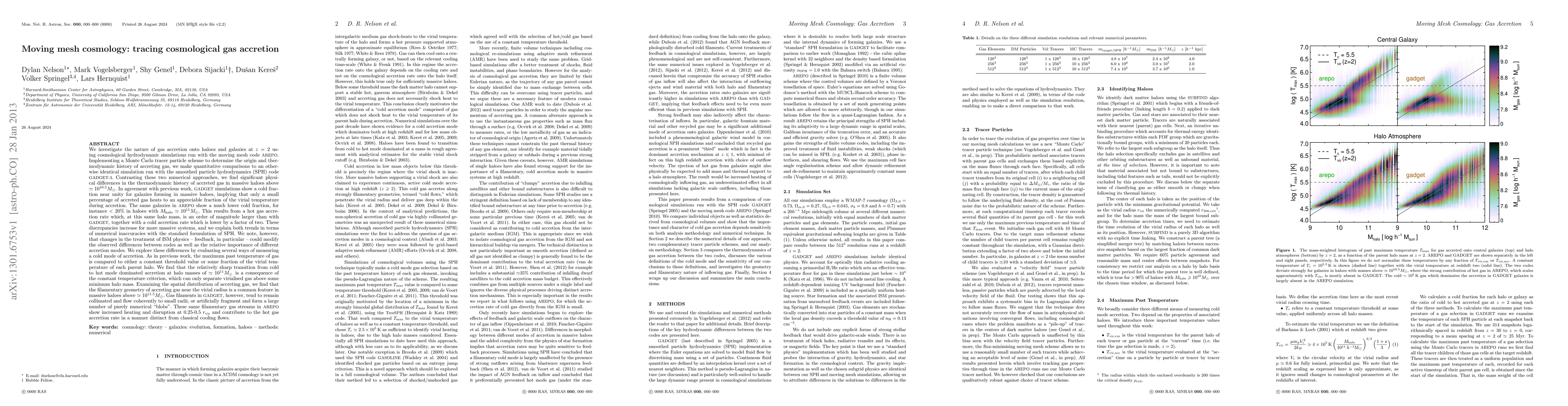 We investigate the nature of gas accretion onto haloes and galaxies at z=2 using cosmological hydrodynamic simulations run with the moving mesh code AREPO. Implementing a Monte Carlo tracer particle scheme to determine the origin and thermodynamic history of accreting gas, we make quantitative comparisons to an otherwise identical simulation run with the smoothed particle hydrodynamics (SPH) code GADGET-3. Contrasting these two numerical approaches, we find significant physical differences in the thermodynamic history of accreted gas in haloes above 10^10.5 solar masses. In agreement with previous work, GADGET simulations show a cold fraction near unity for galaxies forming in massive haloes, implying that only a small percentage of accreted gas heats to an appreciable fraction of the virial temperature during accretion. The same galaxies in AREPO show a much lower cold fraction, <20% in haloes above 10^11 solar masses. This results from a hot gas accretion rate which, at this same halo mass, is an order of magnitude larger than with GADGET, while the cold accretion rate is also lower. These discrepancies increase for more massive systems, and we explain both as due to numerical inaccuracies in the standard formulation of SPH. We also observe that the relatively sharp transition from cold to hot mode dominated accretion, at a halo mass of ~10^11, is a consequence of comparing past gas temperatures to a constant threshold value independent of virial temperature. Examining the spatial distribution of accreting gas, we find that gas filaments in GADGET tend to remain collimated and flow coherently to small radii, or artificially fragment and form a large number of purely numerical "blobs". Similar gas streams in AREPO show increased heating and disruption at 0.25-0.5 virial radii and contribute to the hot gas accretion rate in a manner distinct from classical cooling flows.