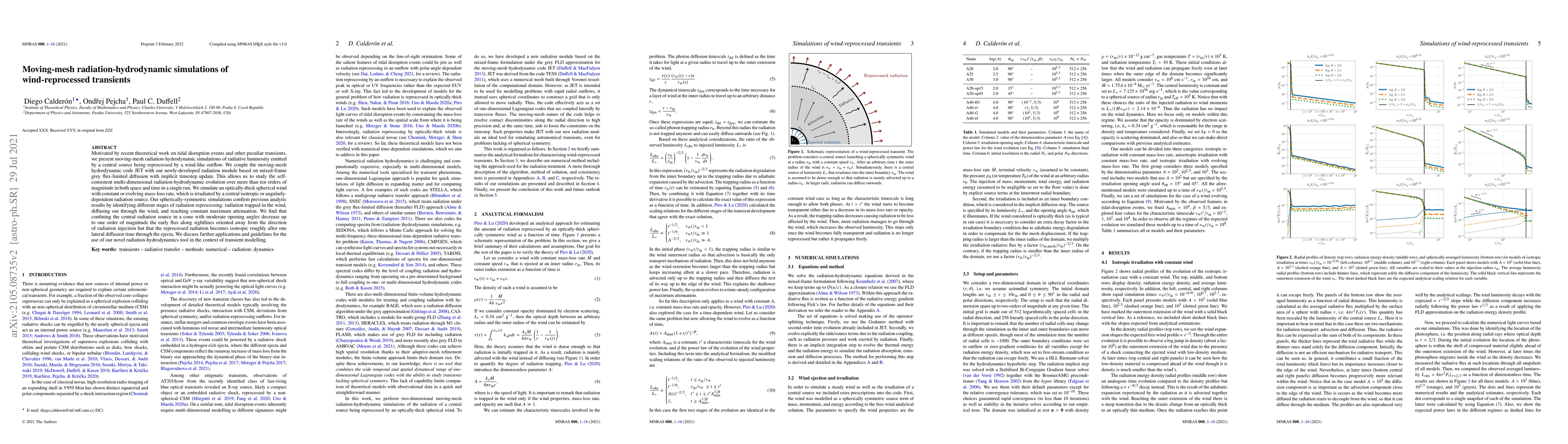 Motivated by recent theoretical work on tidal disruption events and other peculiar transients, we present moving-mesh radiation-hydrodynamic simulations of radiative luminosity emitted by a central source being reprocessed by a wind-like outflow. We couple the moving-mesh hydrodynamic code JET with our newly-developed radiation module based on mixed-frame grey flux-limited diffusion with implicit timestep update. This allows us to study the self-consistent multi-dimensional radiation-hydrodynamic evolution over more than ten orders of magnitude in both space and time in a single run. We simulate an optically-thick spherical wind with constant or evolving mass-loss rate, which is irradiated by a central isotropic or angularly-dependent radiation source. Our spherically-symmetric simulations confirm previous analytic results by identifying different stages of radiation reprocessing: radiation trapped in the wind, diffusing out through the wind, and reaching constant maximum attenuation. We find that confining the central radiation source in a cone with moderate opening angles decrease up to one order of magnitude the early flux along sightlines oriented away from the direction of radiation injection but that the reprocessed radiation becomes isotropic roughly after one lateral diffusion time through the ejecta. We discuss further applications and guidelines for the use of our novel radiation-hydrodynamics tool in the context of transient modelling.