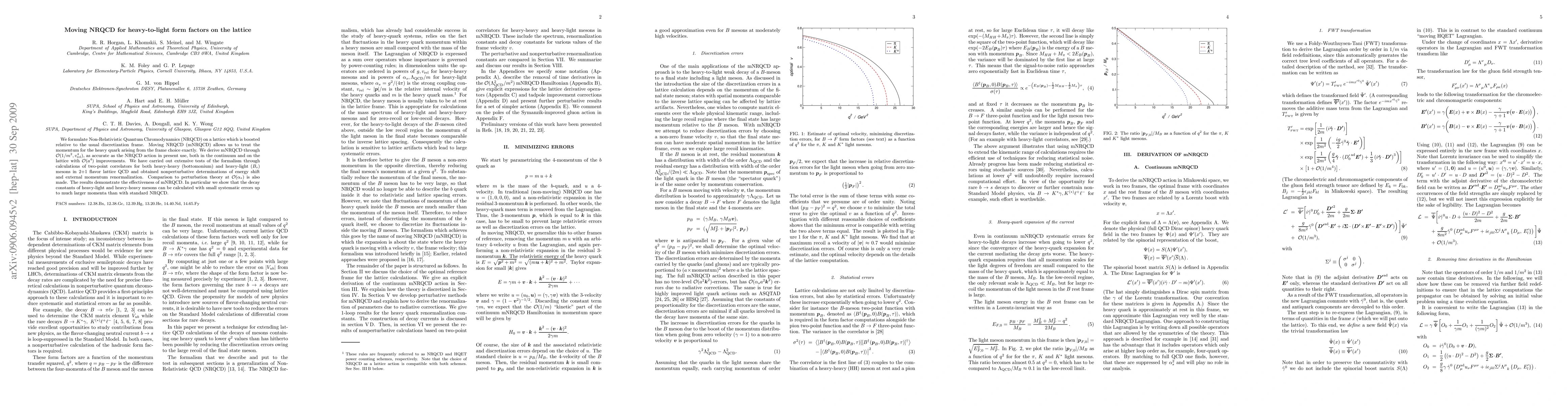 Researchers developed a new lattice gauge theory called moving NRQCD to improve calculations of heavy-to-light form factors in quantum chromodynamics. This approach allows for more accurate determinations of energy shift and external momentum renormalization at higher momenta.
