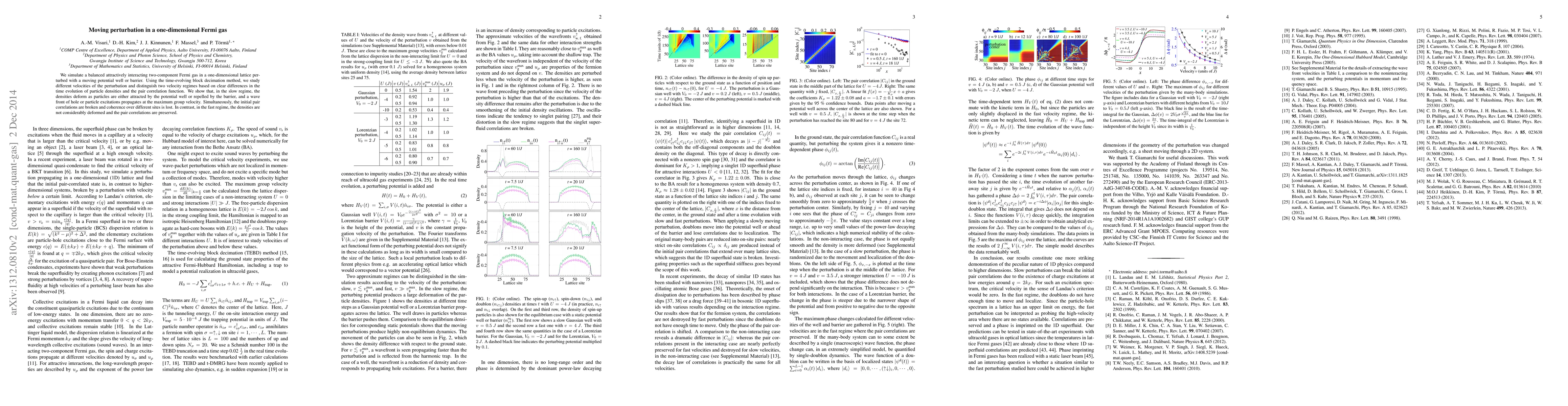We simulate a balanced attractively interacting two-component Fermi gas in a one-dimensional lattice perturbed with a moving potential well or barrier. Using the time-evolving block decimation method, we study different velocities of the perturbation and distinguish two velocity regimes based on clear differences in the time evolution of particle densities and the pair correlation function. We show that, in the slow regime, the densities deform as particles are either attracted by the potential well or repelled by the barrier, and a wave front of hole or particle excitations propagates at the maximum group velocity. Simultaneously, the initial pair correlations are broken and coherence over different sites is lost. In contrast, in the fast regime, the densities are not considerably deformed and the pair correlations are preserved.