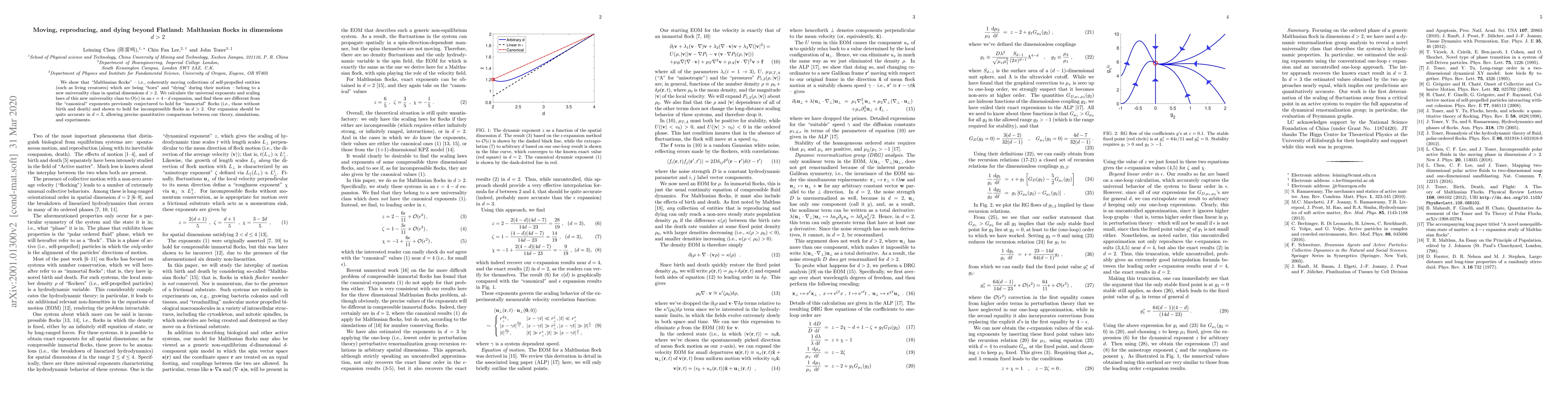 We show that "Malthusian flocks" -- i.e., coherently moving collections of self-propelled entities (such as living creatures) which are being "born" and "dying" during their motion -- belong to a new universality class in spatial dimensions $d>2$. We calculate the universal exponents and scaling laws of this new universality class to $O(\epsilon)$ in an $\epsilon=4-d$ expansion, and find these are different from the "canonical" exponents previously conjectured to hold for "immortal" flocks (i.e., those without birth and death) and shown to hold for incompressible flocks in $d>2$. Our expansion should be quite accurate in $d=3$, allowing precise quantitative comparisons between our theory, simulations, and experiments.