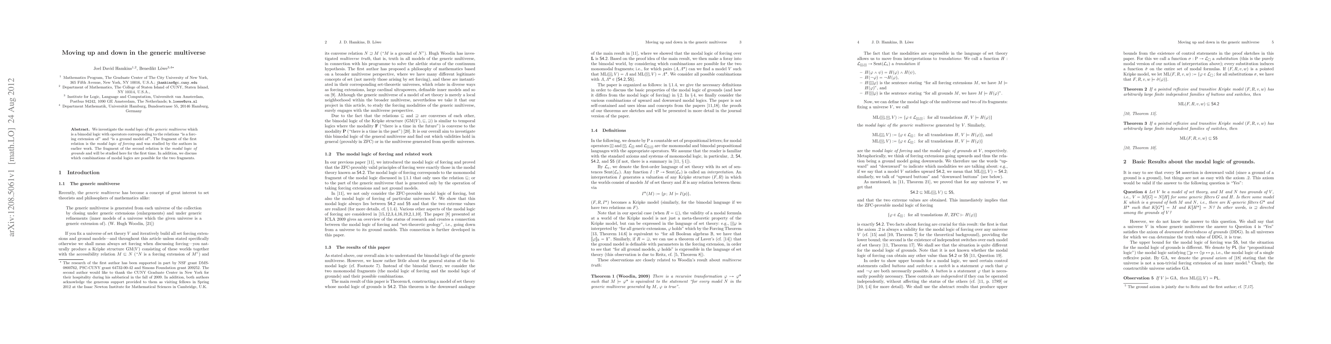 We give a brief account of the modal logic of the generic multiverse, which is a bimodal logic with operators corresponding to the relations "is a forcing extension of" and "is a ground model of". The fragment of the first relation is called the modal logic of forcing and was studied by us in earlier work. The fragment of the second relation is called the modal logic of grounds and will be studied here for the first time. In addition, we discuss which combinations of modal logics are possible for the two fragments.