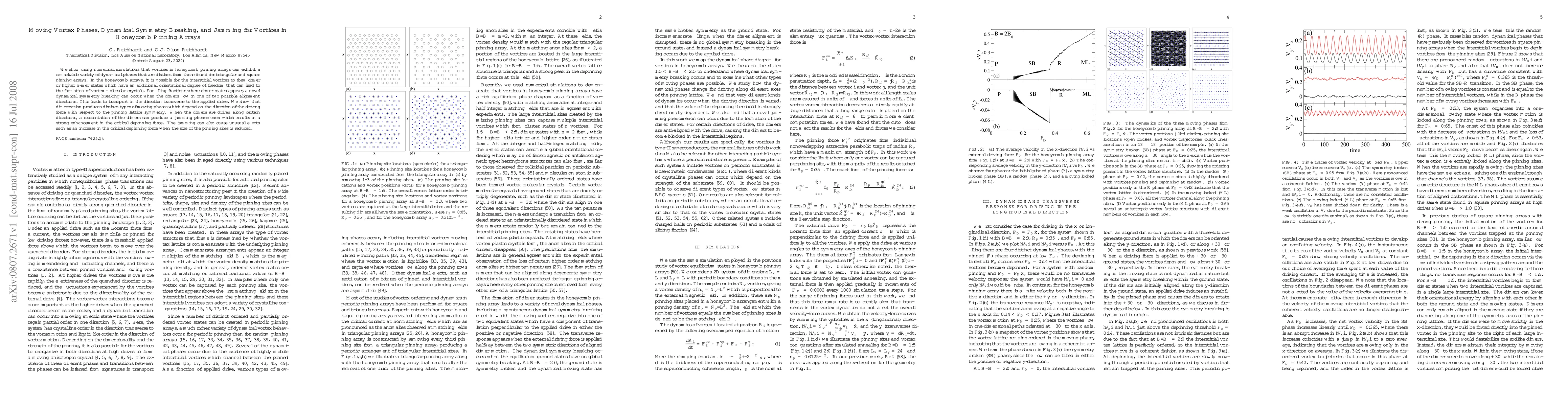 The paper presents a detailed numerical study of vortex dynamics in honeycomb pinning arrays, identifying novel dynamical phases, symmetry breaking, and jamming phenomena.