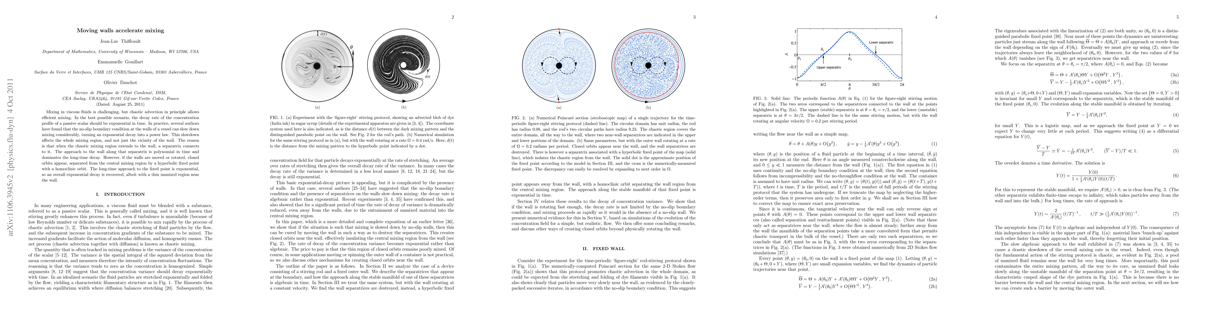 This paper investigates how moving walls in viscous fluids can accelerate mixing by creating closed orbits and hyperbolic fixed points, which restore exponential decay rates in concentration profiles, despite a thin unmixed region near the walls. The no-slip boundary condition typically slows down mixing, but dynamic walls can mitigate this effect.