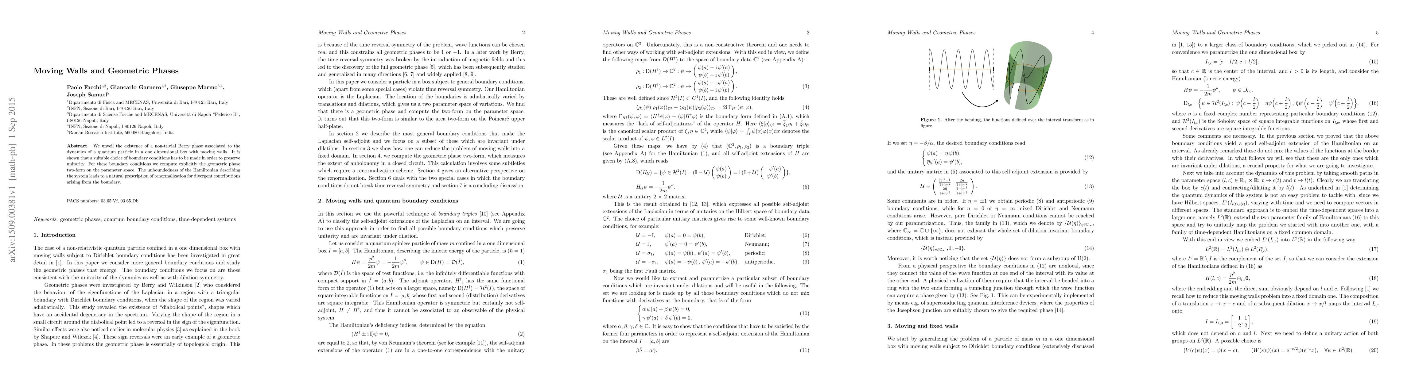 This paper explores the Berry phase in a quantum particle confined in a one-dimensional box with moving walls, demonstrating the necessity of specific boundary conditions to maintain unitarity. It computes the geometric phase two-form and addresses renormalization issues due to the unbounded Hamiltonian.