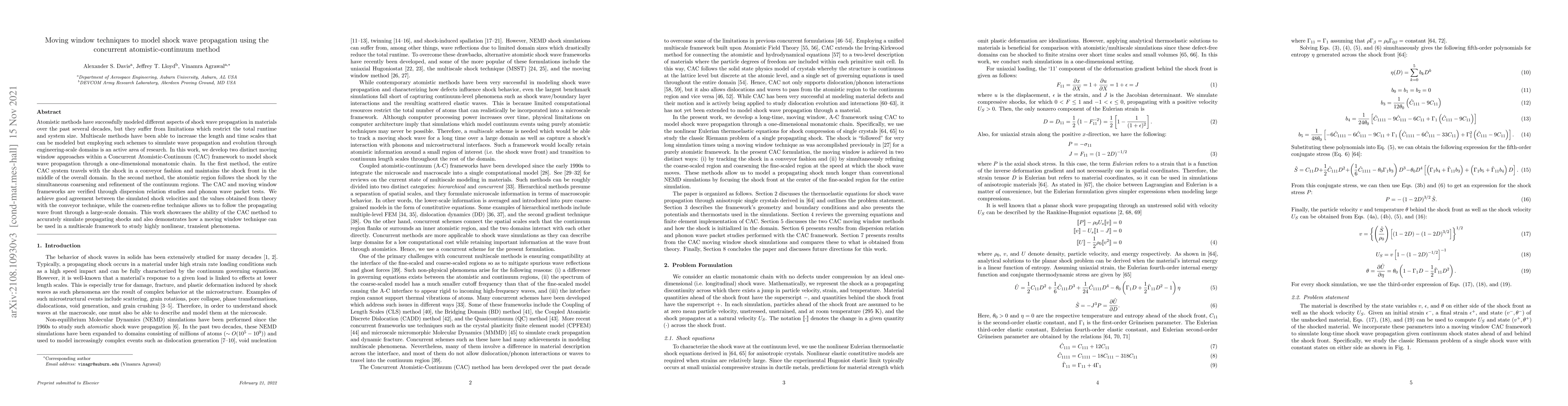 The research develops two moving window approaches within a Concurrent Atomistic-Continuum (CAC) framework to model shock wave propagation through a one-dimensional monatomic chain.