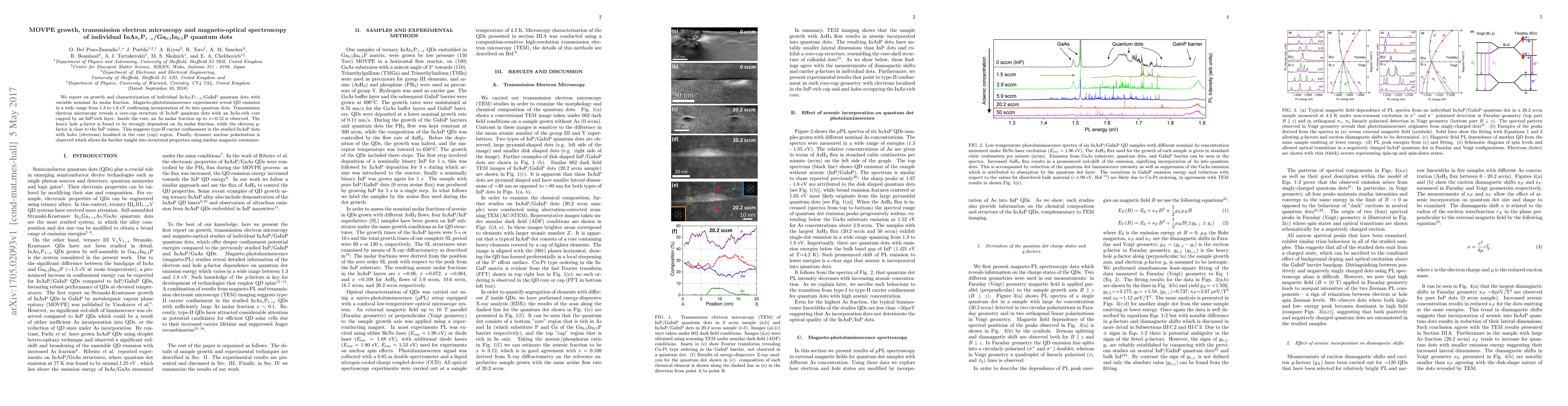 This paper investigates the growth of InAsP/GaInP quantum dots via MOVPE, revealing a core-shell structure with InAs-rich cores and InP-rich caps. Magneto-optical spectroscopy shows emission spanning 1.3 to 1.8 eV, indicating As incorporation, and dynamic nuclear polarization provides insights into structural properties via nuclear magnetic resonance.