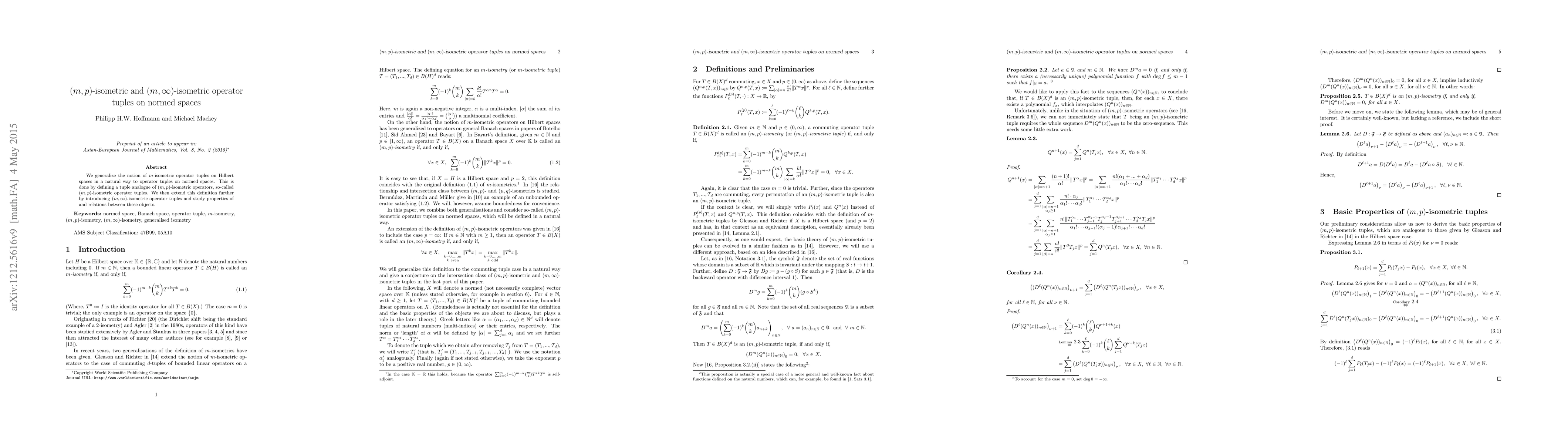 This paper generalizes the concept of $m$-isometric operator tuples from Hilbert spaces to normed spaces by defining $(m,p)$-isometric and $(m,\infty)$-isometric operator tuples, exploring their properties and relationships.