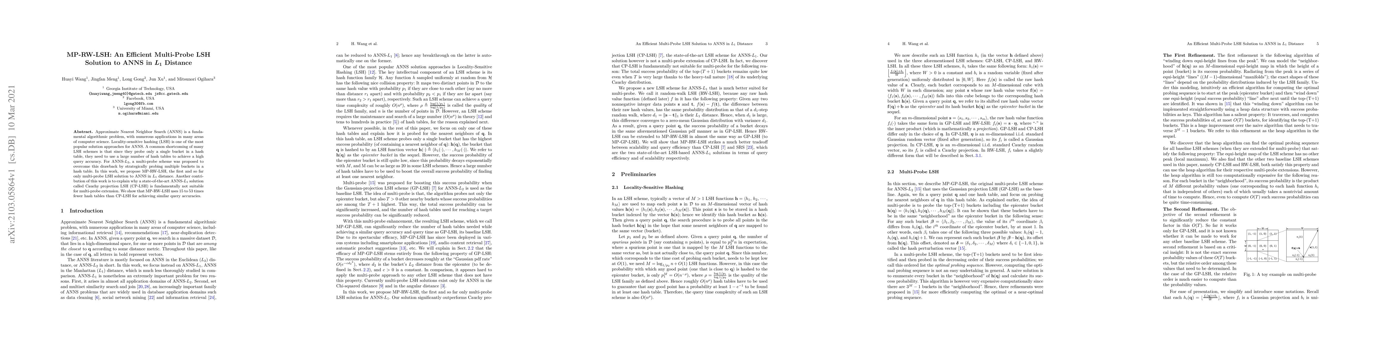 This research paper proposes MP-RW-LSH, an efficient multi-probe LSH solution for ANNS in $L_1$ distance, achieving 15 to 53 times fewer hash tables than a state-of-the-art solution.
