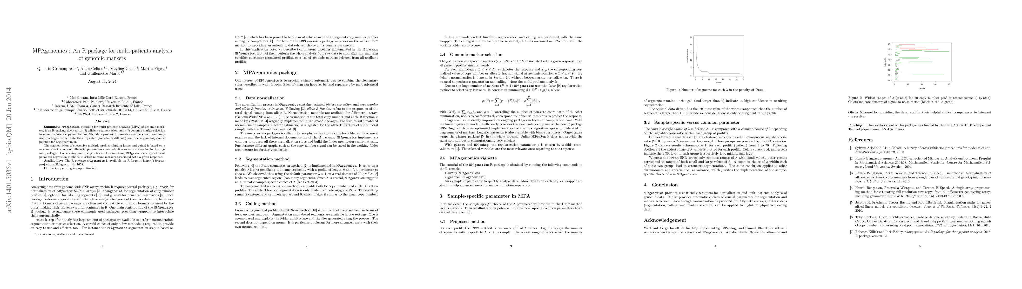 MPAgenomics is an R package that simplifies analysis of genomic markers from multiple patients' data, offering efficient segmentation and marker selection methods. It provides a user-friendly pipeline for beginners in R to analyze copy number and SNP data profiles.