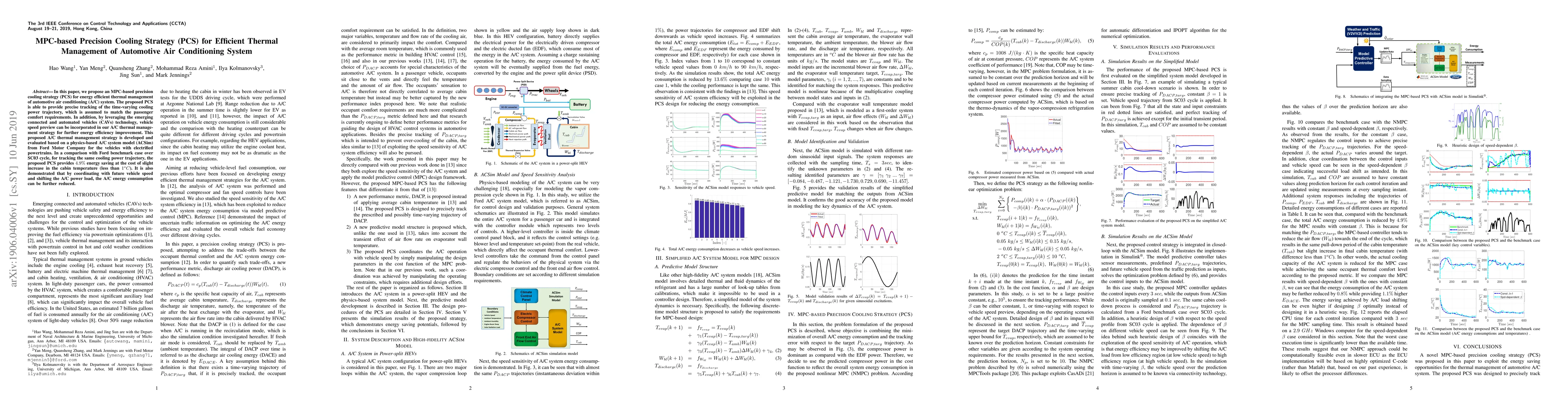 This paper proposes an MPC-based precision cooling strategy (PCS) for efficient thermal management of automotive air conditioning systems, achieving 4.9% energy savings compared to a benchmark case while maintaining passenger comfort. The strategy also incorporates vehicle speed preview from connected and automated vehicles technology for additional energy efficiency.