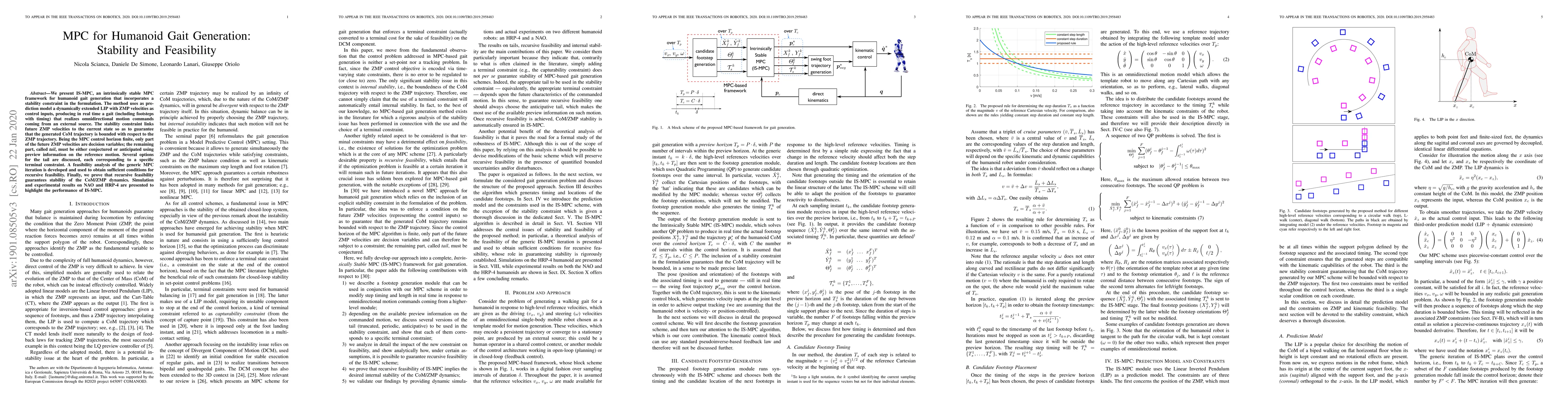 This paper introduces IS-MPC, a stability-constrained model predictive control framework for humanoid gait generation, ensuring bounded CoM trajectory relative to ZMP. It uses a dynamically extended LIP model and discusses various methods for handling the tail of ZMP velocities, proving stability under recursive feasibility conditions, with successful simulations on NAO and HRP-4 humanoids.