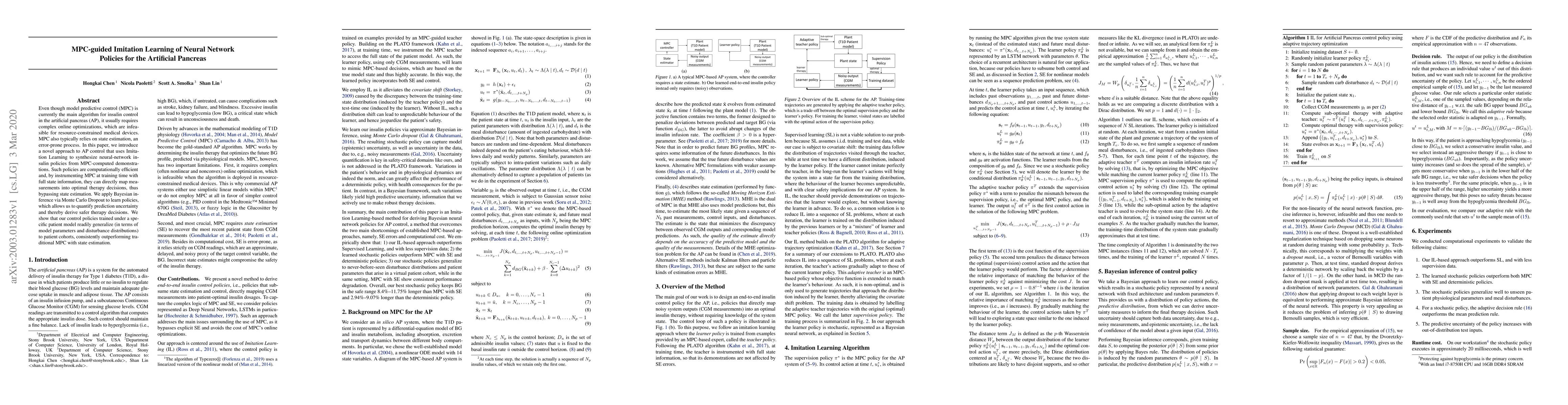 This paper proposes an imitation learning-based approach to develop efficient neural network insulin policies for artificial pancreas control, bypassing the complex online optimizations and error-prone state estimation of traditional model predictive control. The approach uses MPC-guided demonstrations and Bayesian inference to learn policies that generalize well to patient cohorts, outperforming traditional MPC.