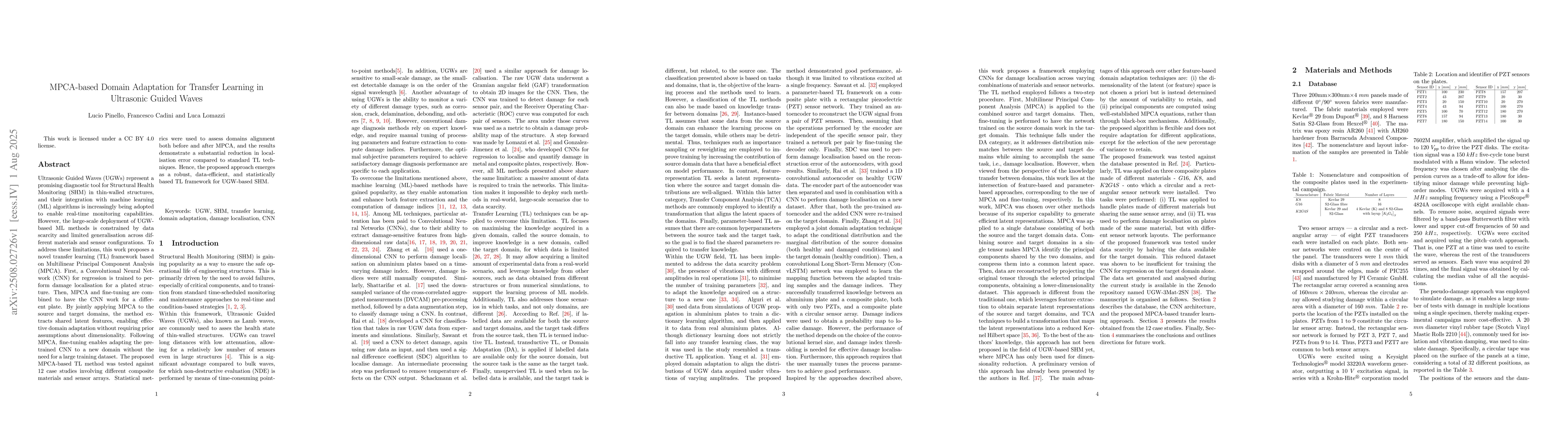 Ultrasonic Guided Waves (UGWs) represent a promising diagnostic tool for Structural Health Monitoring (SHM) in thin-walled structures, and their integration with machine learning (ML) algorithms is increasingly being adopted to enable real-time monitoring capabilities. However, the large-scale deployment of UGW-based ML methods is constrained by data scarcity and limited generalisation across different materials and sensor configurations. To address these limitations, this work proposes a novel transfer learning (TL) framework based on Multilinear Principal Component Analysis (MPCA). First, a Convolutional Neural Network (CNN) for regression is trained to perform damage localisation for a plated structure. Then, MPCA and fine-tuning are combined to have the CNN work for a different plate. By jointly applying MPCA to the source and target domains, the method extracts shared latent features, enabling effective domain adaptation without requiring prior assumptions about dimensionality. Following MPCA, fine-tuning enables adapting the pre-trained CNN to a new domain without the need for a large training dataset. The proposed MPCA-based TL method was tested against 12 case studies involving different composite materials and sensor arrays. Statistical metrics were used to assess domains alignment both before and after MPCA, and the results demonstrate a substantial reduction in localisation error compared to standard TL techniques. Hence, the proposed approach emerges as a robust, data-efficient, and statistically based TL framework for UGW-based SHM.