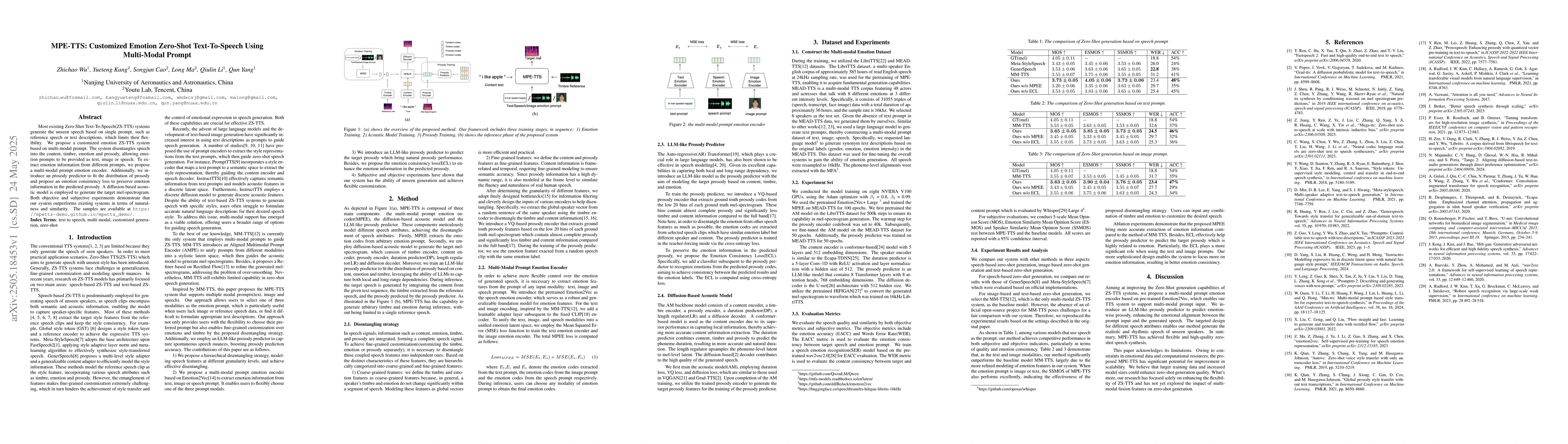 The research proposes a customized emotion Zero-Shot Text-To-Speech (ZS-TTS) system using a multi-modal prompt. It disentangles speech into content, timbre, emotion, and prosody, enabling emotion prompts in text, image, or speech form. A multi-modal prompt emotion encoder extracts emotion information, while a prosody predictor and emotion consistency loss preserve emotion in predicted prosody. A diffusion-based acoustic model generates the mel-spectrogram.
