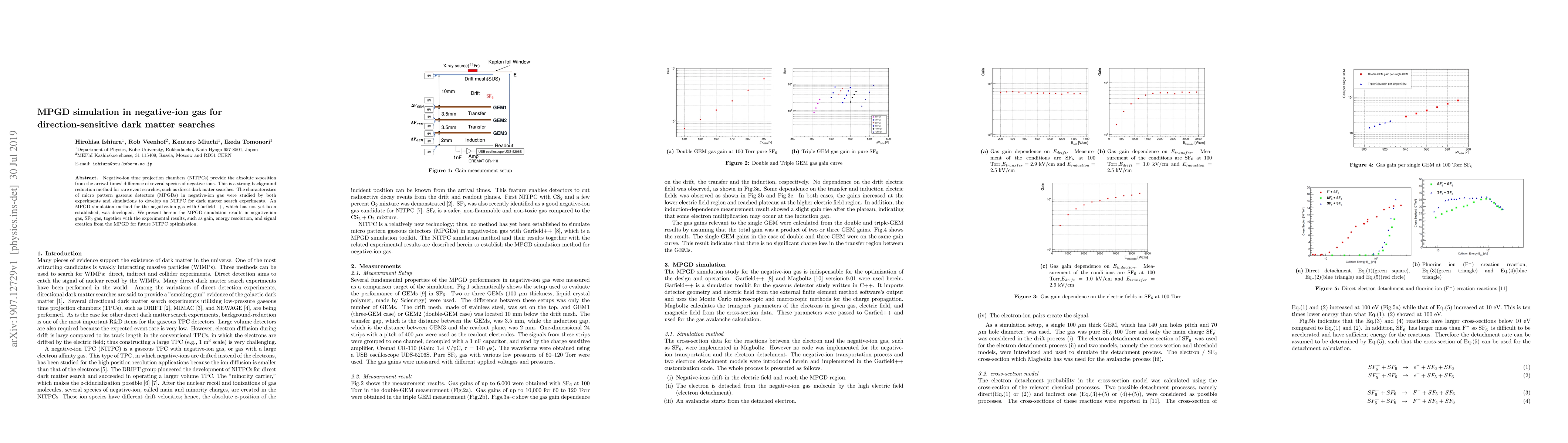 Negative-ion time projection chambers (NITPCs) provide the absolute z-position from the arrival-times' difference of several species of negative-ions. This is a strong background reduction method for rare event searches, such as direct dark mater searches. The characteristics of micro pattern gaseous detectors (MPGDs) in negative-ion gas were studied by both experiments and simulations to develop an NITPC for dark matter search experiments. An MPGD simulation method for the negative-ion gas with Garfield++, which has not yet been established, was developed. We present herein the MPGD simulation results in negative-ion gas, $\mathrm{SF_{6}}$ gas, together with the experimental results, such as gain, energy resolution, and signal creation from the MPGD for future NITPC optimization.