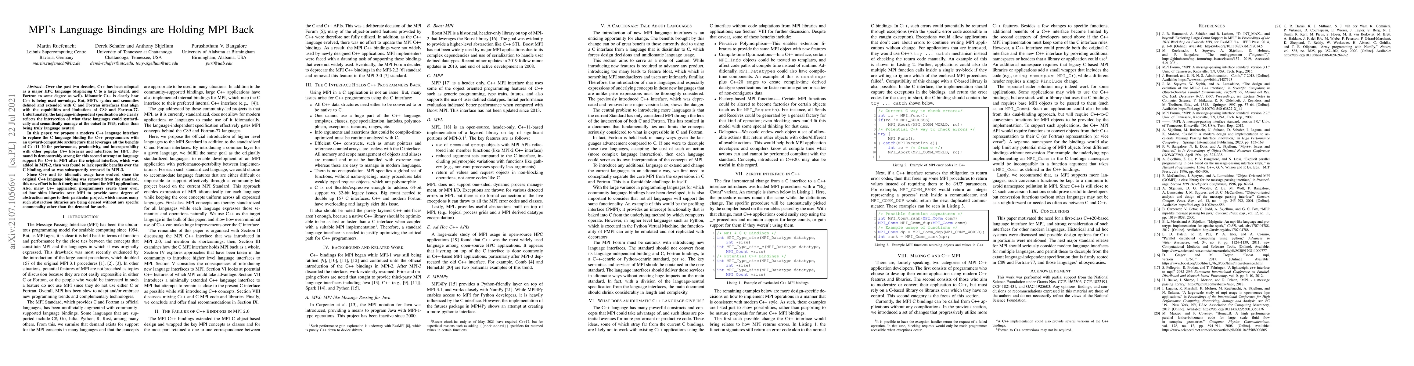This paper argues that MPI's outdated language bindings, particularly its C interface, are hindering its adoption by modern C++ programmers. It proposes a new C++ language interface to modernize MPI, leveraging C++11-20 benefits for better performance and interoperability, and addressing the shortcomings of the previous C++ binding removed in MPI-3.