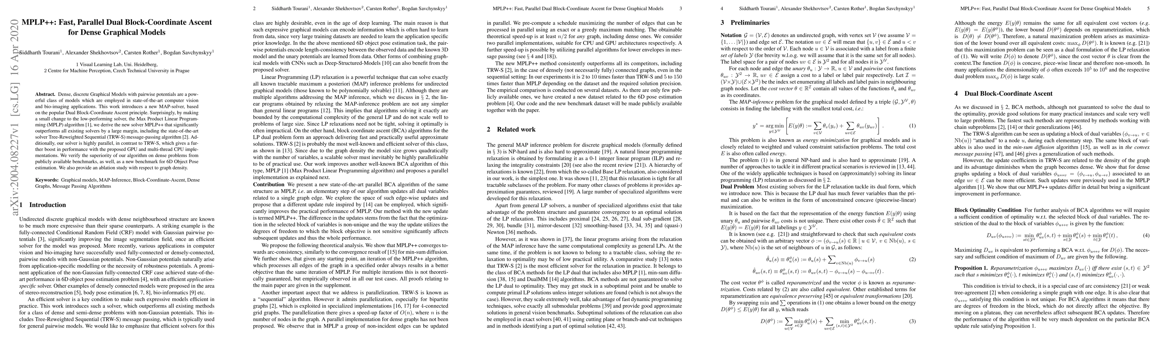 Dense, discrete Graphical Models with pairwise potentials are a powerful class of models which are employed in state-of-the-art computer vision and bio-imaging applications. This work introduces a new MAP-solver, based on the popular Dual Block-Coordinate Ascent principle. Surprisingly, by making a small change to the low-performing solver, the Max Product Linear Programming (MPLP) algorithm, we derive the new solver MPLP++ that significantly outperforms all existing solvers by a large margin, including the state-of-the-art solver Tree-Reweighted Sequential (TRWS) message-passing algorithm. Additionally, our solver is highly parallel, in contrast to TRWS, which gives a further boost in performance with the proposed GPU and multi-thread CPU implementations. We verify the superiority of our algorithm on dense problems from publicly available benchmarks, as well, as a new benchmark for 6D Object Pose estimation. We also provide an ablation study with respect to graph density.