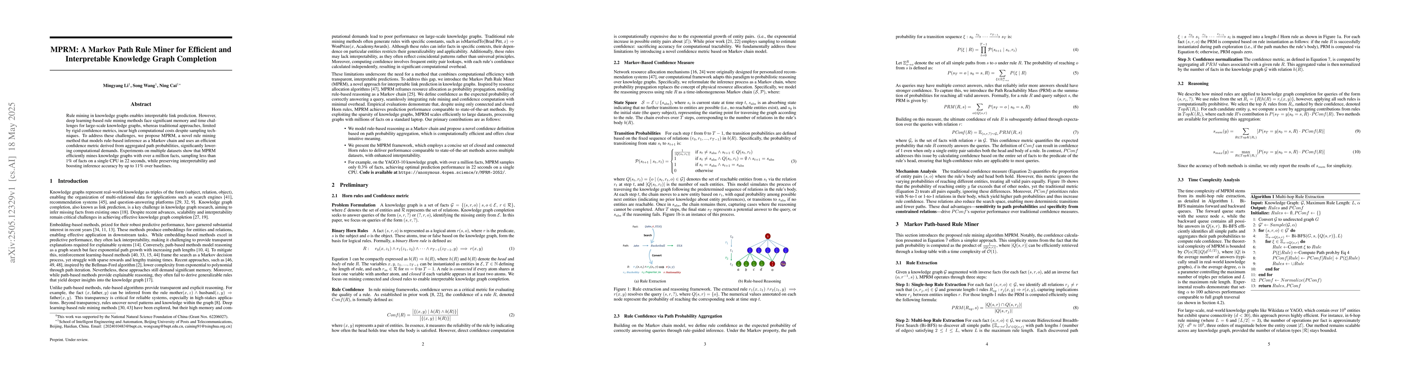 This paper introduces MPRM, a rule mining method that uses Markov chains to efficiently mine large knowledge graphs while preserving interpretability.