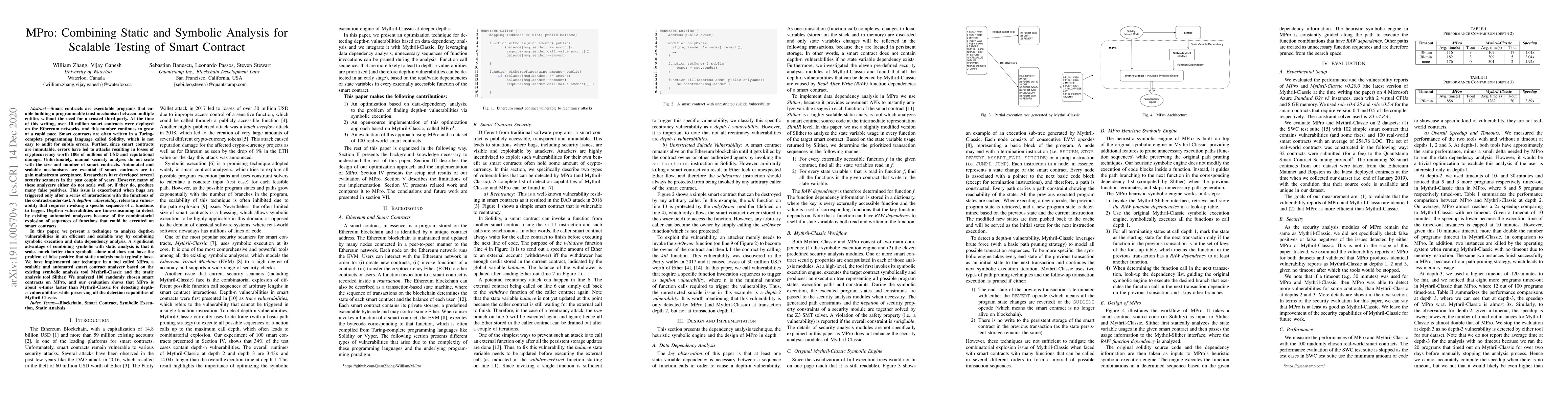 This paper introduces MPro, a scalable smart contract analyzer that combines static and symbolic analysis to efficiently detect depth-n vulnerabilities in smart contracts. MPro outperforms existing tools by scaling better and reducing false positives, as demonstrated by its faster detection of vulnerabilities compared to Mythril-Classic.