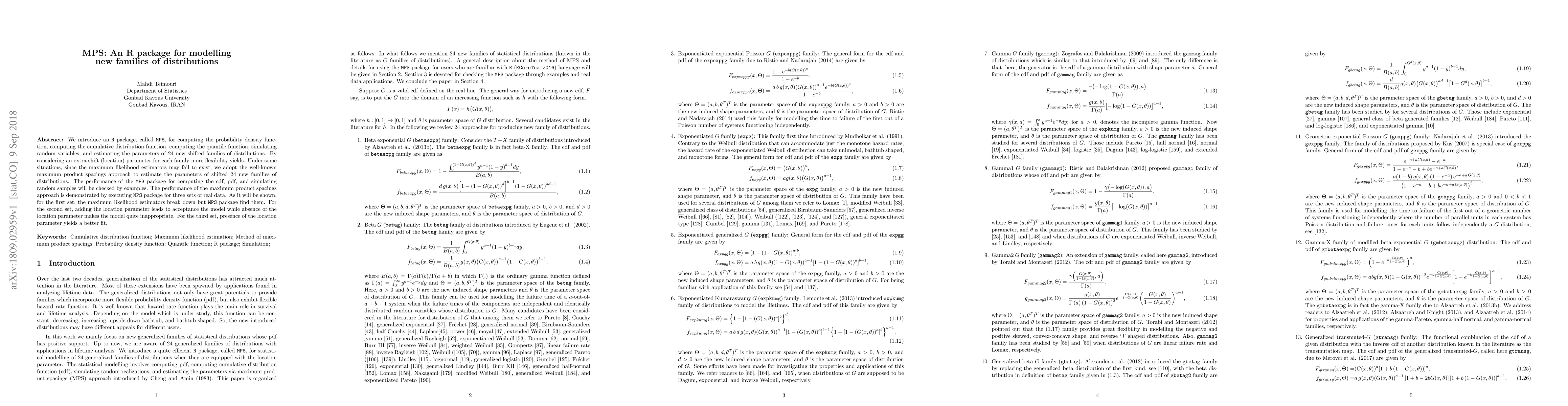 A new R package called MPS is introduced to model 24 shifted families of distributions with added location parameter flexibility. It offers methods for calculating probability density functions, cumulative distribution functions, and simulating random variables.