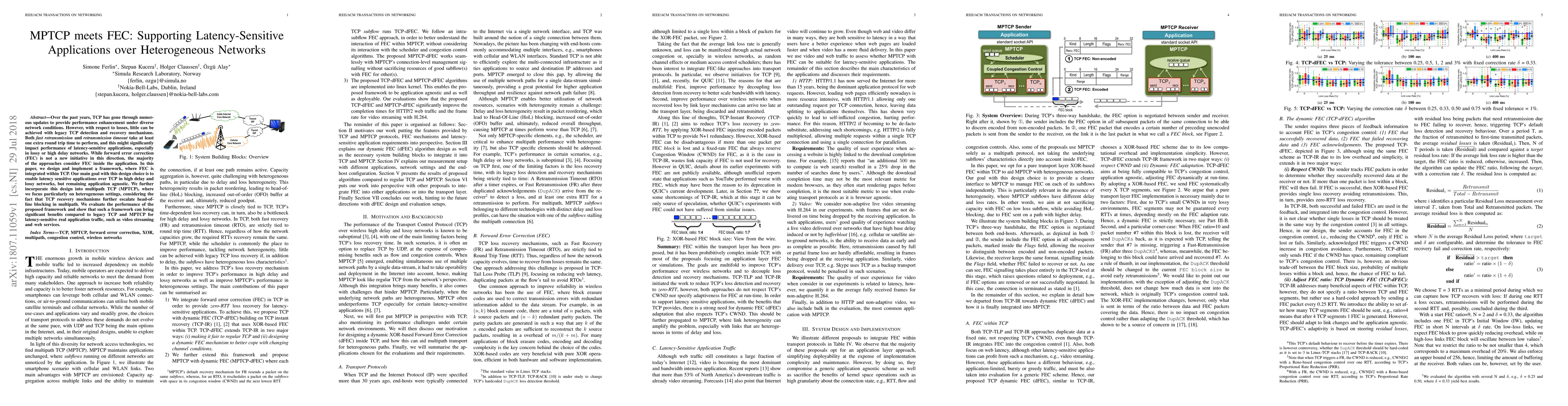 Researchers designed a framework integrating forward error correction within TCP to support latency-sensitive applications in lossy networks. The framework outperforms legacy TCP and MPTCP for real application traffic like video streaming and web services.