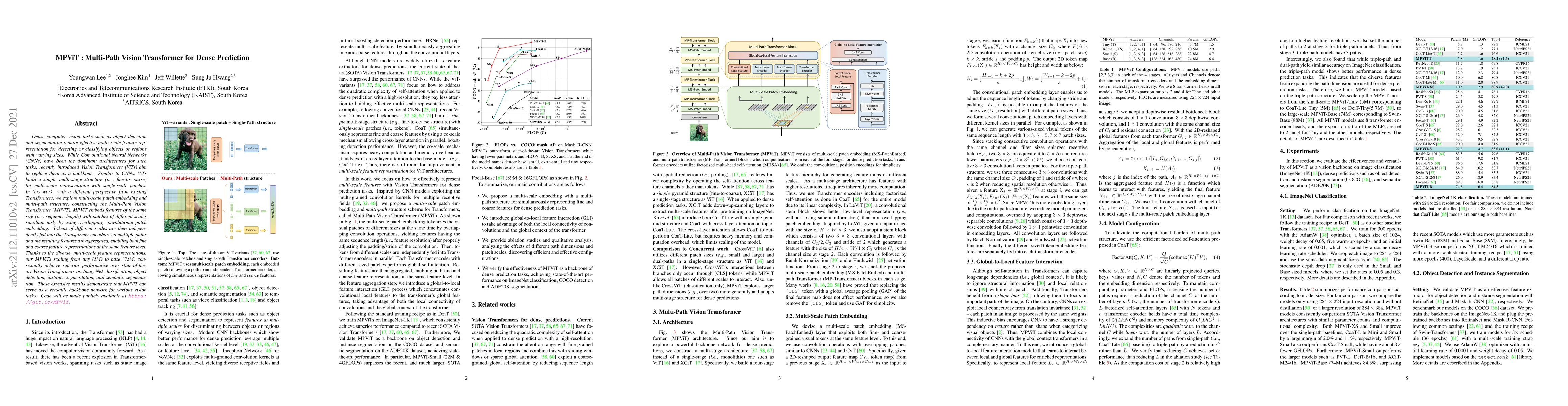 MPViT introduces a multi-path Vision Transformer architecture that leverages multi-scale patch embedding and multiple paths for independent Transformer encoders to achieve superior performance in dense computer vision tasks like object detection and segmentation. The proposed method consistently outperforms existing Vision Transformers across various vision tasks.
