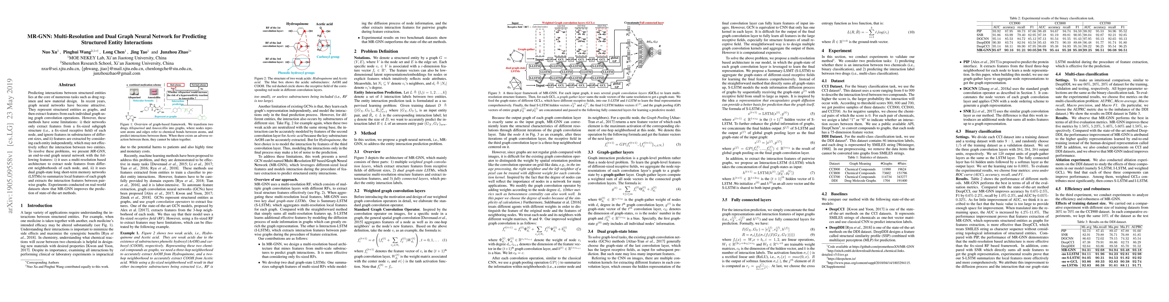 MR-GNN is a multi-resolution and dual graph neural network designed to predict interactions between structured entities by extracting features from various neighborhood sizes and summarizing local graph features. It outperforms existing methods on real-world datasets.