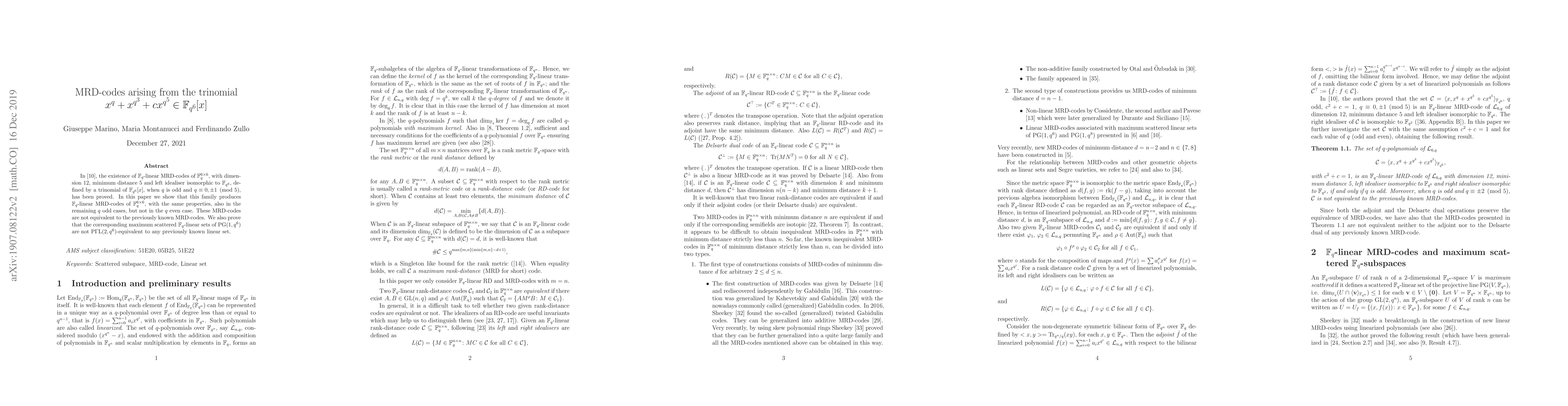 This paper extends the existence of $\mathbb{F}_q$-linear Maximum Rank Distance (MRD) codes of $\mathbb{F}_q^{6\times 6}$ with dimension $12$, minimum distance $5$, and specific properties to all odd $q$ values, excluding even $q$. It also shows that these MRD-codes differ from previously known ones.