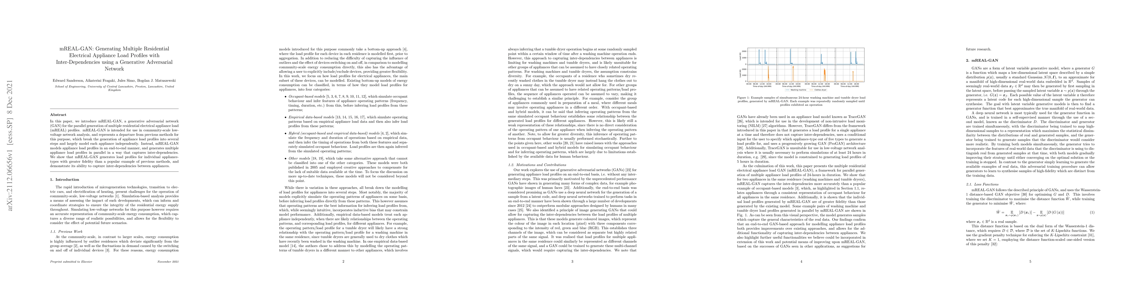 mREAL-GAN is a generative adversarial network designed to generate multiple residential electrical appliance load profiles in parallel, capturing inter-dependencies. It outperforms previous methods by generating more accurate profiles and modeling appliances in an end-to-end manner.