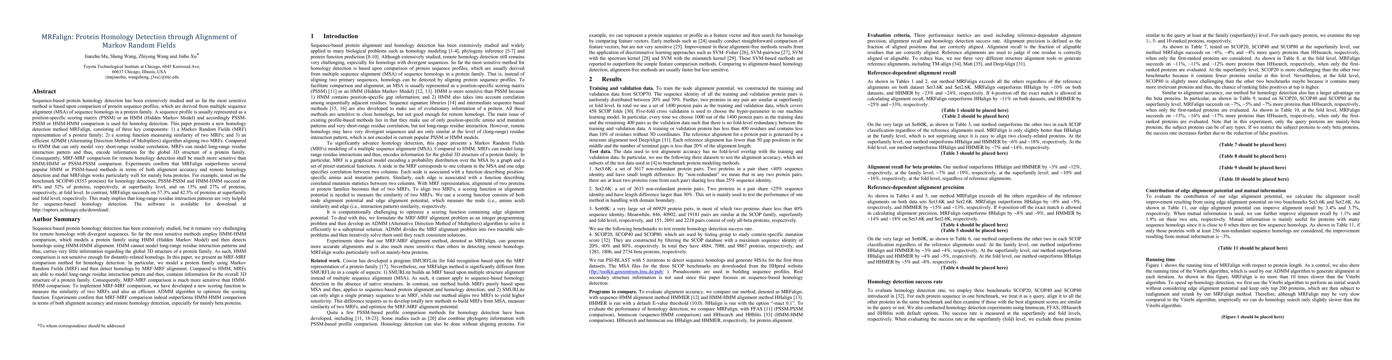 Sequence-based protein homology detection has been extensively studied and so far the most sensitive method is based upon comparison of protein sequence profiles, which are derived from multiple sequence alignment (MSA) of sequence homologs in a protein family. A sequence profile is usually represented as a position-specific scoring matrix (PSSM) or an HMM (Hidden Markov Model) and accordingly PSSM-PSSM or HMM-HMM comparison is used for homolog detection. This paper presents a new homology detection method MRFalign, consisting of three key components: 1) a Markov Random Fields (MRF) representation of a protein family; 2) a scoring function measuring similarity of two MRFs; and 3) an efficient ADMM (Alternating Direction Method of Multipliers) algorithm aligning two MRFs. Compared to HMM that can only model very short-range residue correlation, MRFs can model long-range residue interaction pattern and thus, encode information for the global 3D structure of a protein family. Consequently, MRF-MRF comparison for remote homology detection shall be much more sensitive than HMM-HMM or PSSM-PSSM comparison. Experiments confirm that MRFalign outperforms several popular HMM or PSSM-based methods in terms of both alignment accuracy and remote homology detection and that MRFalign works particularly well for mainly beta proteins. For example, tested on the benchmark SCOP40 (8353 proteins) for homology detection, PSSM-PSSM and HMM-HMM succeed on 48% and 52% of proteins, respectively, at superfamily level, and on 15% and 27% of proteins, respectively, at fold level. In contrast, MRFalign succeeds on 57.3% and 42.5% of proteins at superfamily and fold level, respectively. This study implies that long-range residue interaction patterns are very helpful for sequence-based homology detection. The software is available for download at http://raptorx.uchicago.edu/download/.