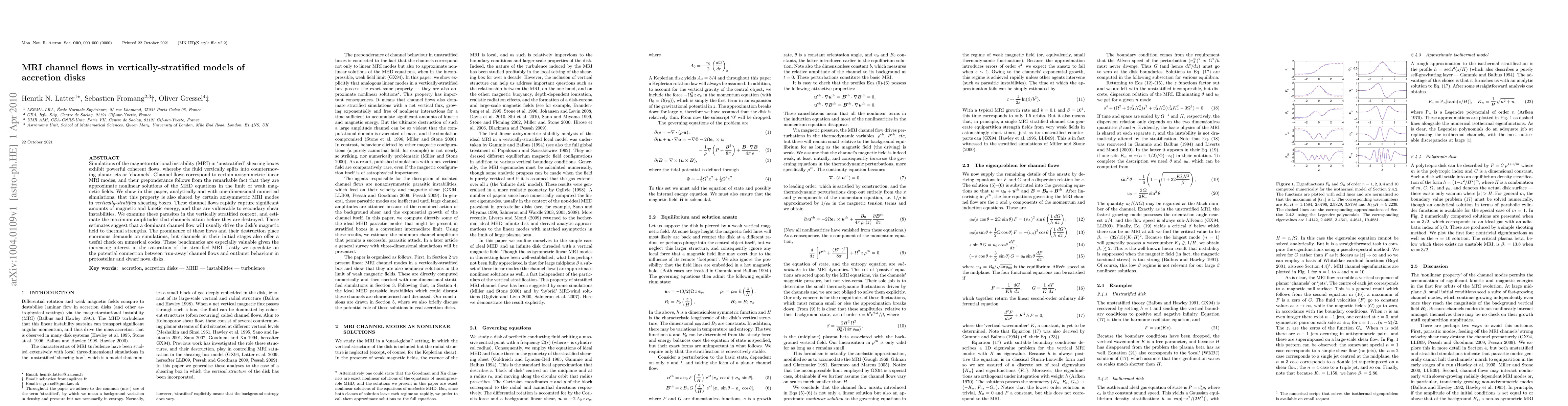 The paper presents an analytical and numerical study of axisymmetric MRI modes in vertically stratified shearing boxes, demonstrating that certain modes behave similarly to unstratified cases and providing estimates for channel amplitudes before destruction by parasitic instabilities.