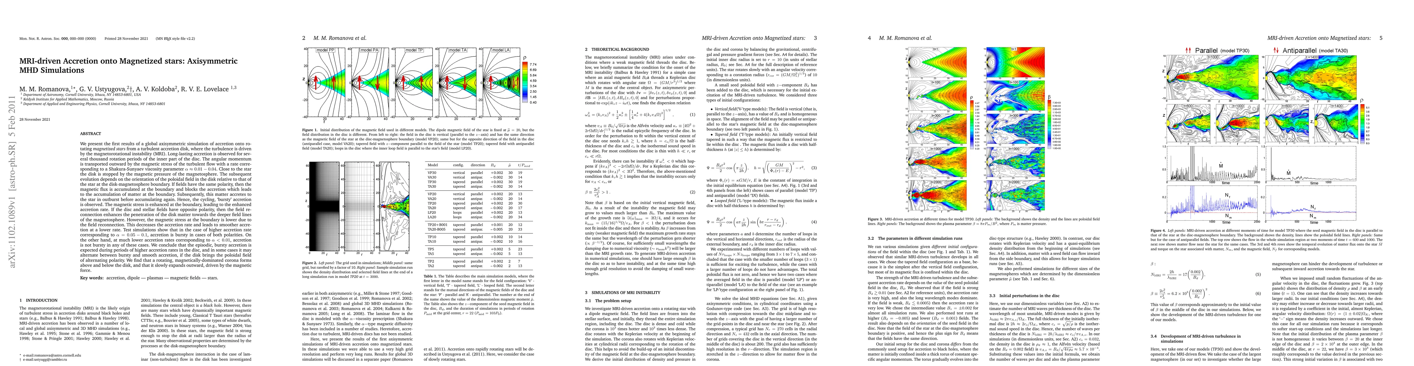 This paper presents axisymmetric MHD simulations of accretion onto magnetized stars from MRI-driven turbulent disks, showing that accretion rate and field polarity determine whether the accretion is bursty or smooth. Higher accretion rates lead to episodic bursts, while lower rates result in steady accretion.