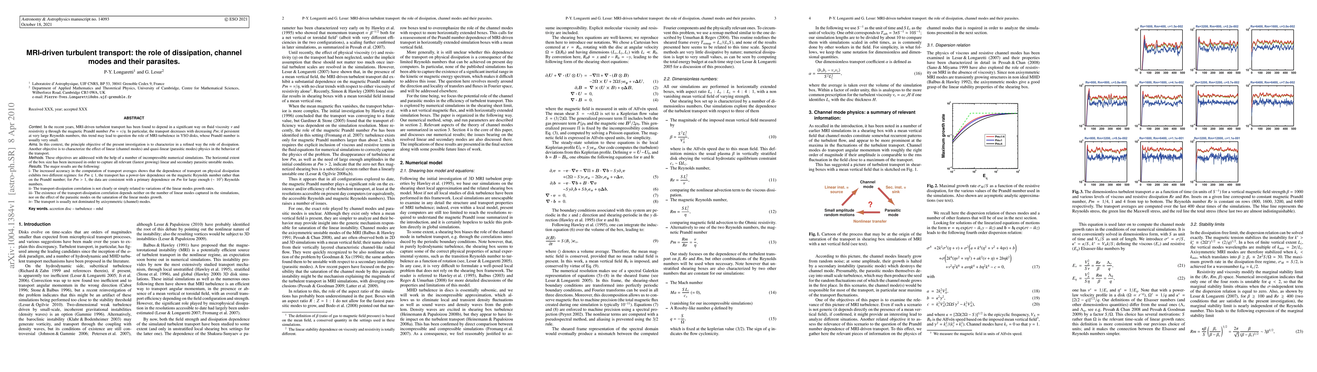 In the recent years, MRI-driven turbulent transport has been found to depend in a significant way on fluid viscosity $\nu$ and resistivity $\eta$ through the magnetic Prandtl number $Pm=\nu/\eta$. In particular, the transport decreases with decreasing $Pm$; if persistent at very large Reynolds numbers, this trend may lead to question the role of MRI-turbulence in YSO disks, whose Prandtl number is usually very small. In this context, the principle objective of the present investigation is to characterize in a refined way the role of dissipation. Another objective is to characterize the effect of linear (channel modes) and quasi-linear (parasitic modes) physics in the behavior of the transport. These objectives are addressed with the help of a number of incompressible numerical simulations. The horizontal extent of the box size has been increased in order to capture all relevant (fastest growing) linear and secondary parasitic unstable modes. The major results are the following: i- The increased accuracy in the computation of transport averages shows that the dependence of transport on physical dissipation exhibits two different regimes: for $Pm \lesssim 1$, the transport has a power-law dependence on the magnetic Reynolds number rather than on the Prandtl number; for $Pm > 1$, the data are consistent with a primary dependence on $Pm$ for large enough ($\sim 10^3$) Reynolds numbers. ii- The transport-dissipation correlation is not clearly or simply related to variations of the linear modes growth rates. iii- The existence of the transport-dissipation correlation depends neither on the number of linear modes captured in the simulations, nor on the effect of the parasitic modes on the saturation of the linear modes growth. iv- The transport is usually not dominated by axisymmetric (channel) modes