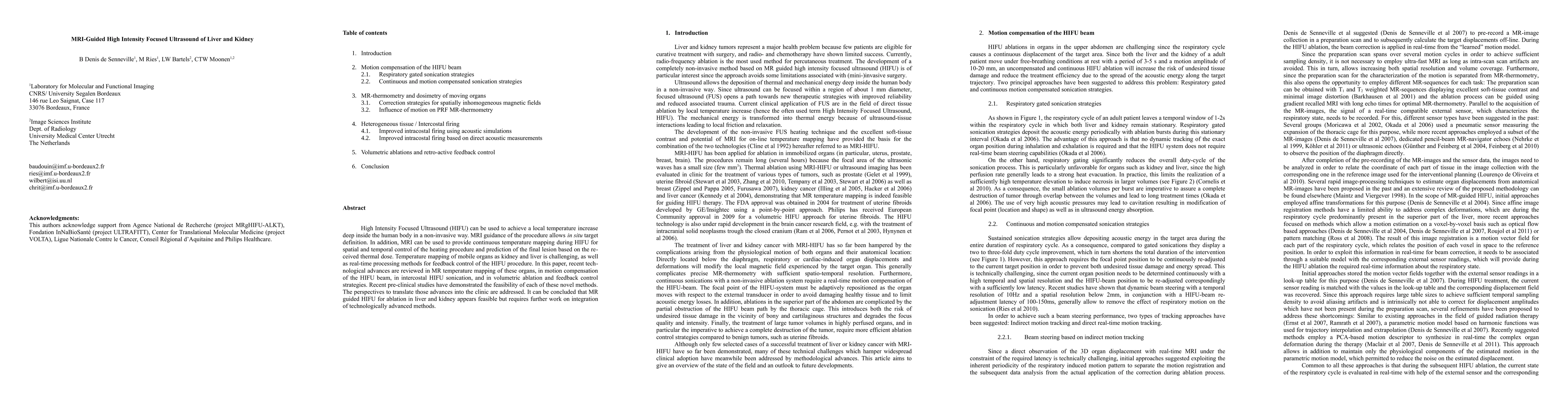 Researchers have made progress in using MRI guidance for High Intensity Focused Ultrasound (HIFU) to treat liver and kidney diseases, but further work is needed to integrate advanced technologies into the procedure.