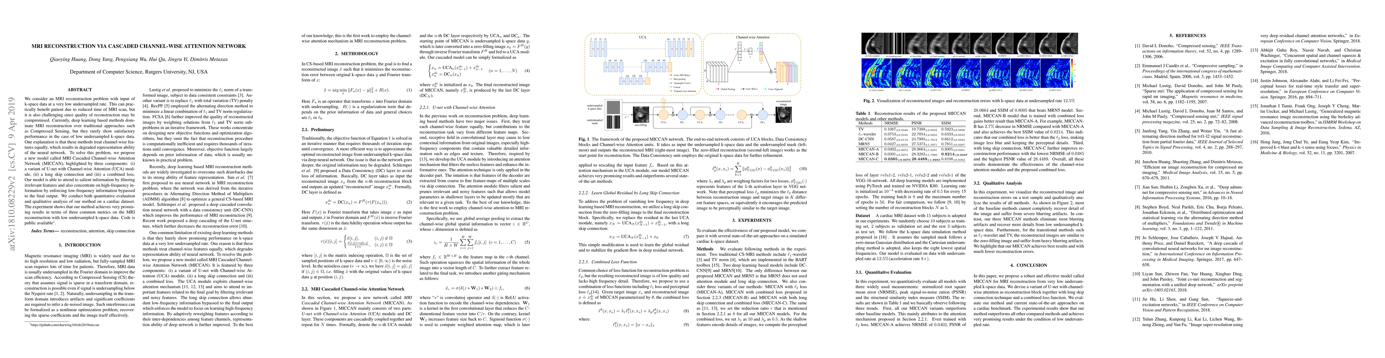 This paper proposes a novel MRI Cascaded Channel-wise Attention Network (MICCAN) to improve reconstruction quality from low undersampled k-space data. The model uses a Channel-wise Attention module, long skip connections, and a combined loss to focus on salient features, achieving superior results in both quantitative and qualitative evaluations.