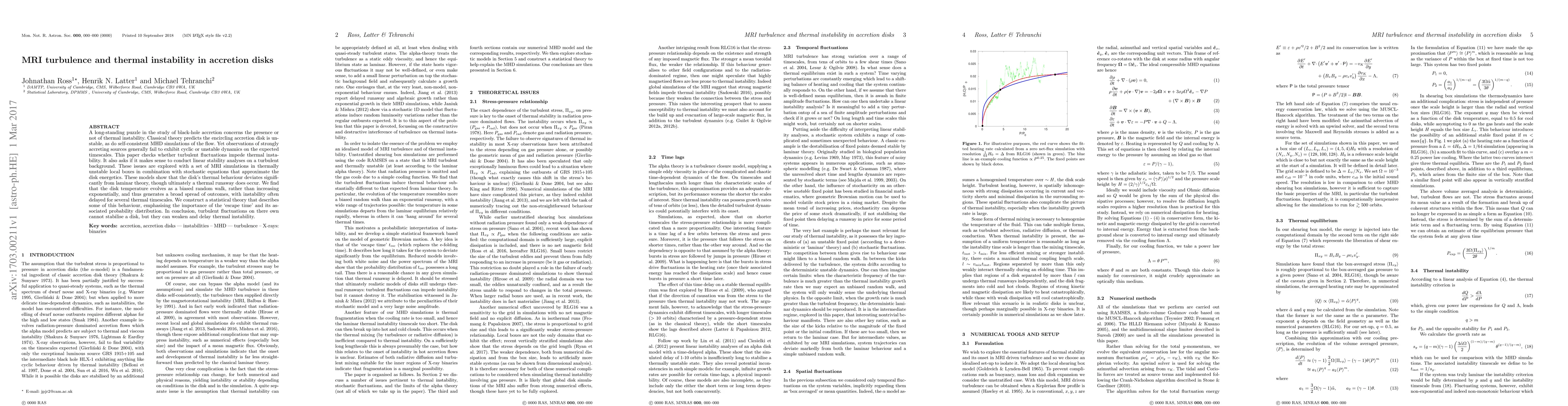 A long-standing puzzle in the study of black-hole accretion concerns the presence or not of thermal instability. Classical theory predicts the encircling accretion disk is unstable, as do some self-consistent MHD simulations of the flow. Yet observations of strongly accreting sources generally fail to exhibit cyclic or unstable dynamics on the expected timescales. This paper checks whether turbulent fluctuations impede thermal instability. It also asks if it makes sense to conduct linear stability analyses on a turbulent background. These issues are explored with a set of MRI simulations in thermally unstable local boxes in combination with stochastic equations that approximate the disk energetics. These models show that the disk's thermal behaviour deviates significantly from laminar theory, though ultimately a thermal runaway does occur. We find that the disk temperature evolves as a biased random walk, rather than increasing exponentially, and thus generates a broad spread of outcomes, with instability often delayed for several thermal times. We construct a statistical theory that describes some of this behaviour, emphasising the importance of the `escape time' and its associated probability distribution. In conclusion, turbulent fluctuations on there own cannot stabilise a disk, but they can weaken and delay thermal instability.