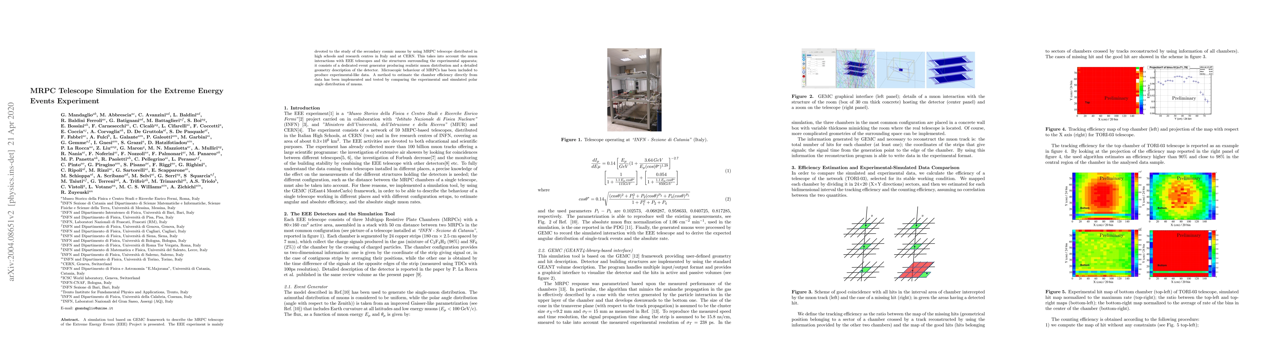 Researchers developed a simulation tool to study secondary cosmic muons using MRPC telescopes in the Extreme Energy Events (EEE) Project, which includes a dedicated event generator and detailed detector geometry.