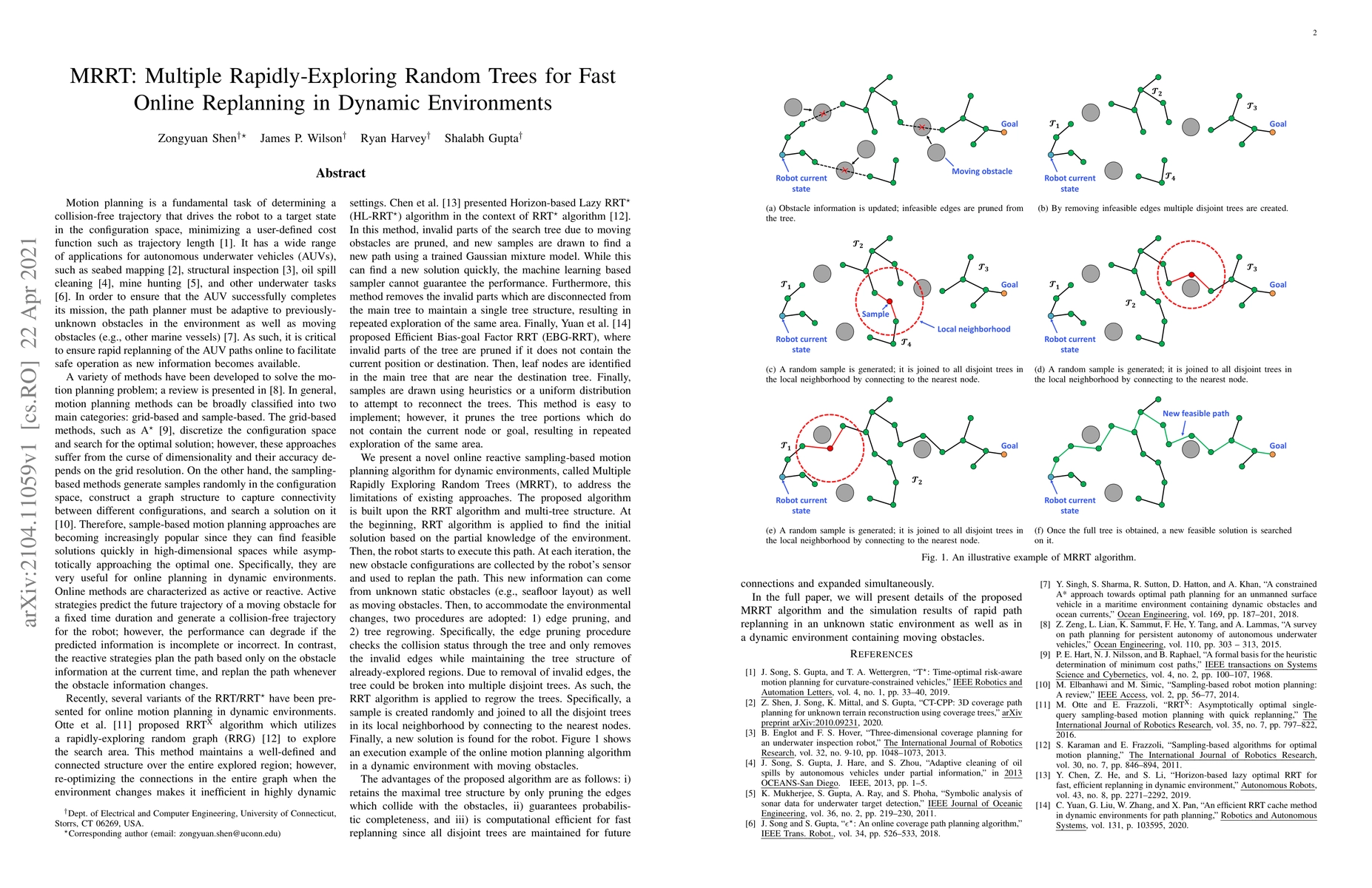 MRRT algorithm proposes a novel approach for fast online replanning of autonomous vehicles in dynamic environments, using multiple rapidly-exploring random trees to efficiently adapt to changing obstacles.