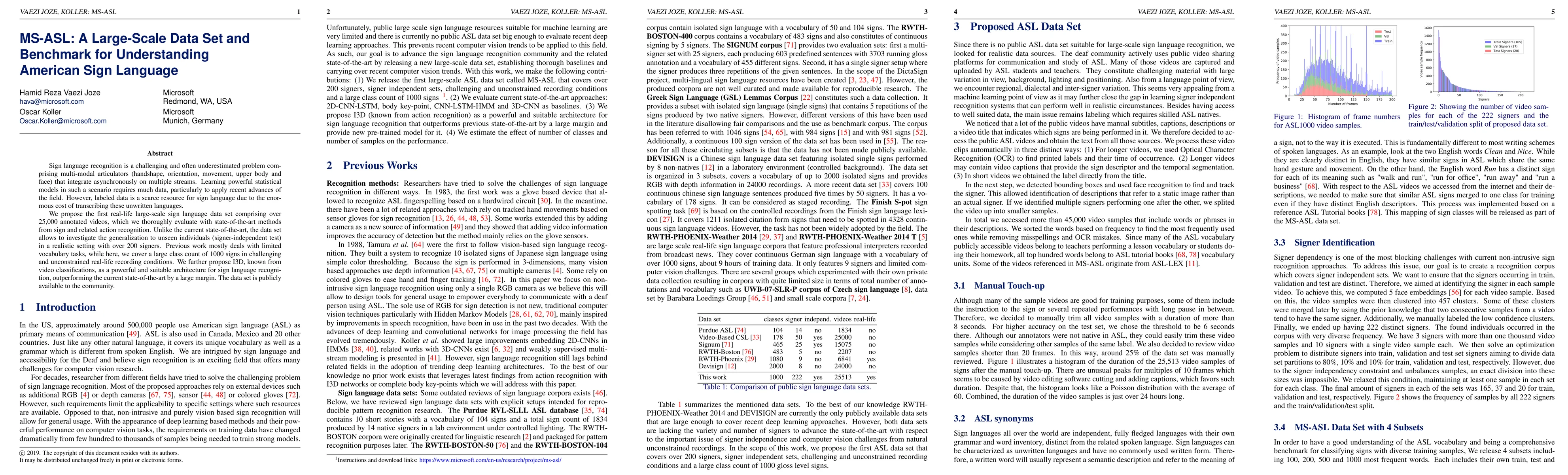 Sign language recognition is a challenging and often underestimated problem comprising multi-modal articulators (handshape, orientation, movement, upper body and face) that integrate asynchronously on multiple streams. Learning powerful statistical models in such a scenario requires much data, particularly to apply recent advances of the field. However, labeled data is a scarce resource for sign language due to the enormous cost of transcribing these unwritten languages. We propose the first real-life large-scale sign language data set comprising over 25,000 annotated videos, which we thoroughly evaluate with state-of-the-art methods from sign and related action recognition. Unlike the current state-of-the-art, the data set allows to investigate the generalization to unseen individuals (signer-independent test) in a realistic setting with over 200 signers. Previous work mostly deals with limited vocabulary tasks, while here, we cover a large class count of 1000 signs in challenging and unconstrained real-life recording conditions. We further propose I3D, known from video classifications, as a powerful and suitable architecture for sign language recognition, outperforming the current state-of-the-art by a large margin. The data set is publicly available to the community.
