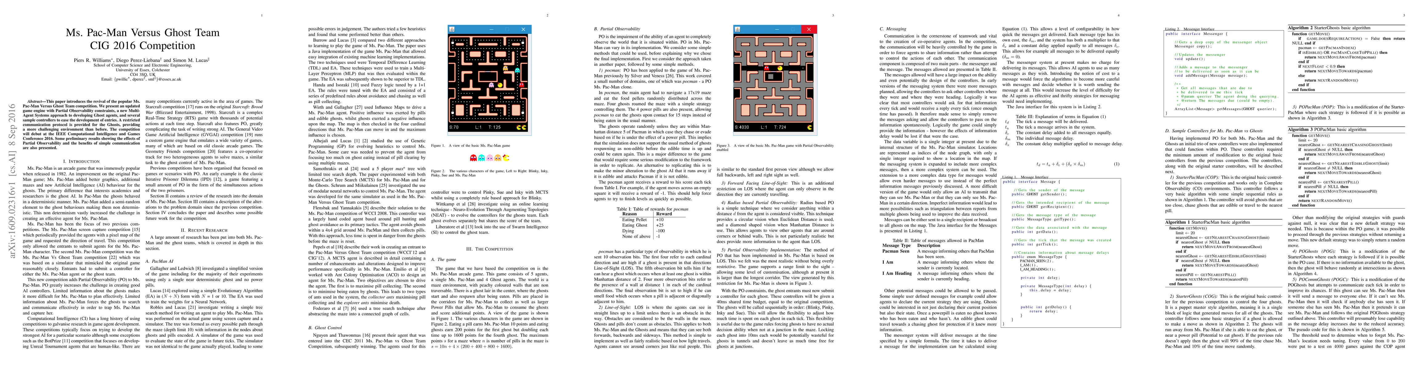 This paper introduces the revival of the popular Ms. Pac-Man Versus Ghost Team competition. We present an updated game engine with Partial Observability constraints, a new Multi-Agent Systems approach to developing Ghost agents and several sample controllers to ease the development of entries. A restricted communication protocol is provided for the Ghosts, providing a more challenging environment than before. The competition will debut at the IEEE Computational Intelligence and Games Conference 2016. Some preliminary results showing the effects of Partial Observability and the benefits of simple communication are also presented.