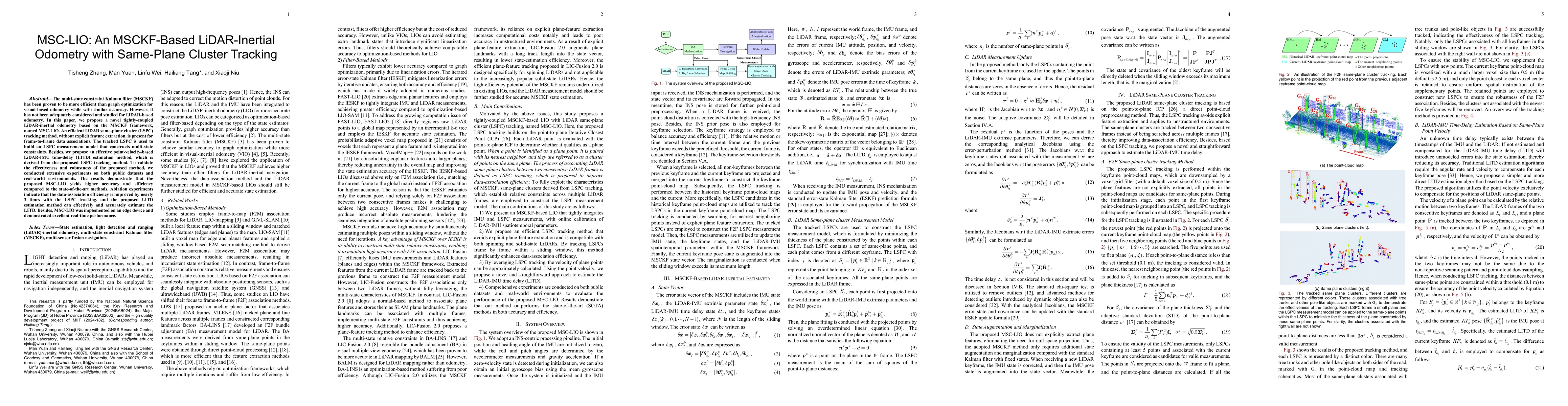 This paper proposes a novel LiDAR-inertial odometry method called MSC-LIO, which combines multi-state constraint Kalman filter with efficient same-plane cluster tracking for improved accuracy and efficiency.