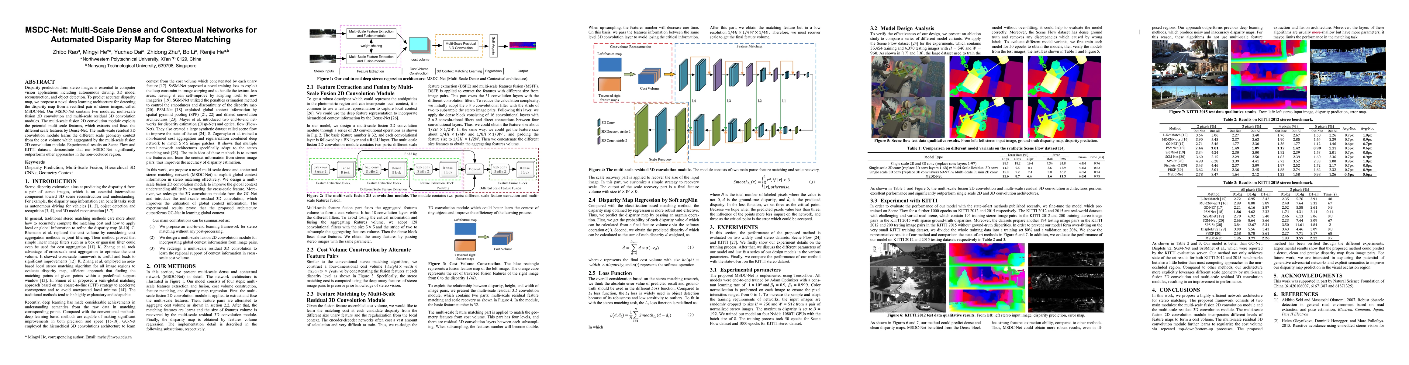 MSDC-Net is a novel deep learning architecture for generating accurate disparity maps from stereo images, utilizing multi-scale fusion 2D convolution and multi-scale residual 3D convolution modules. It outperforms other methods on non-occluded regions in Scene Flow and KITTI datasets.