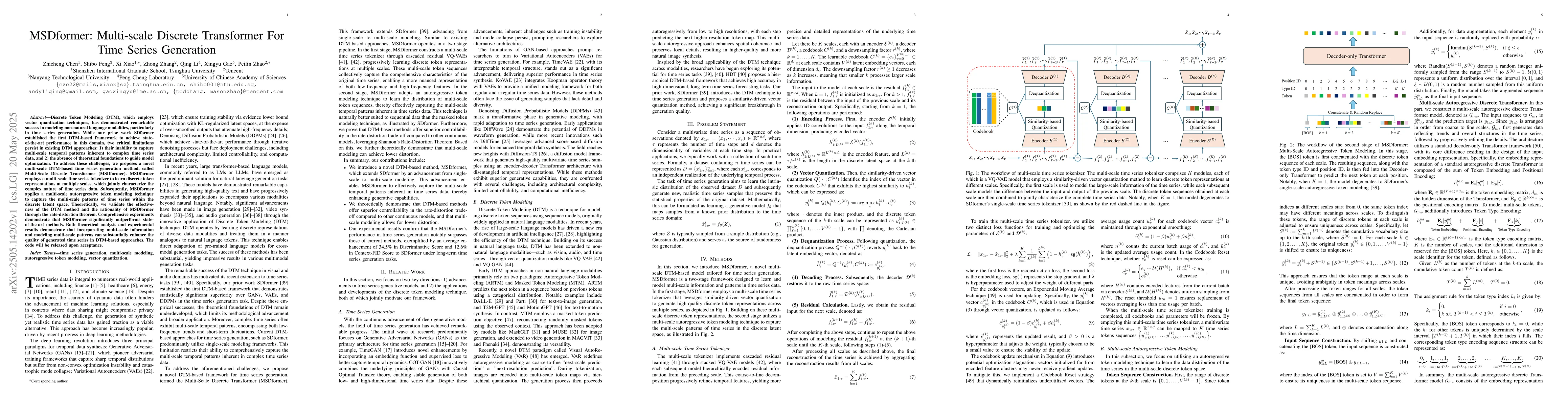 A new method called MSDformer is proposed for generating time series data, which uses a multi-scale discrete transformer approach to capture complex patterns in time series data and outperforms state-of-the-art methods.