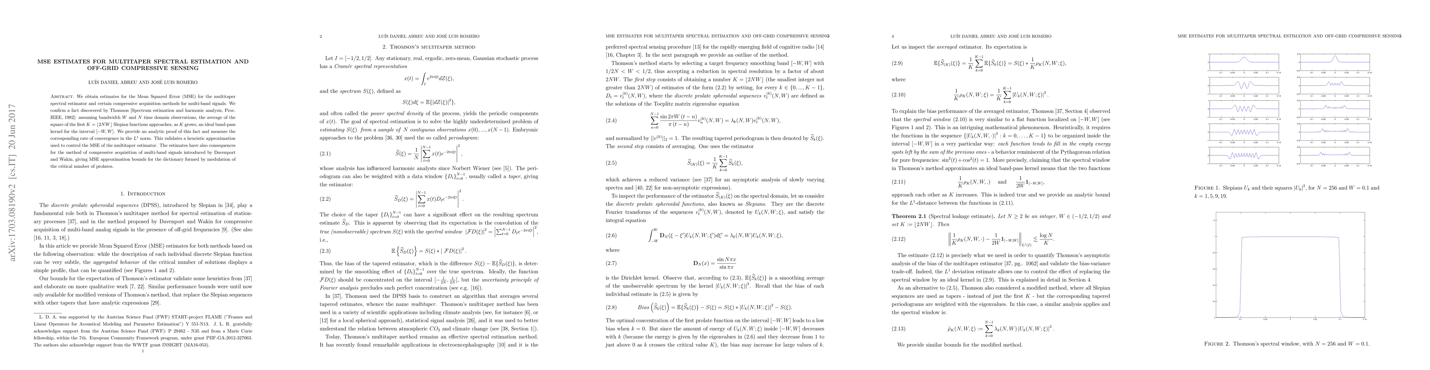 This paper provides Mean Squared Error (MSE) estimates for the multitaper spectral estimator and compressive sensing methods for multi-band signals, confirming Thomson's finding on the convergence of Slepian functions. It also offers analytic proof and convergence rate in the $L^{1}$ norm, validating the heuristic approximation used to control the MSE.