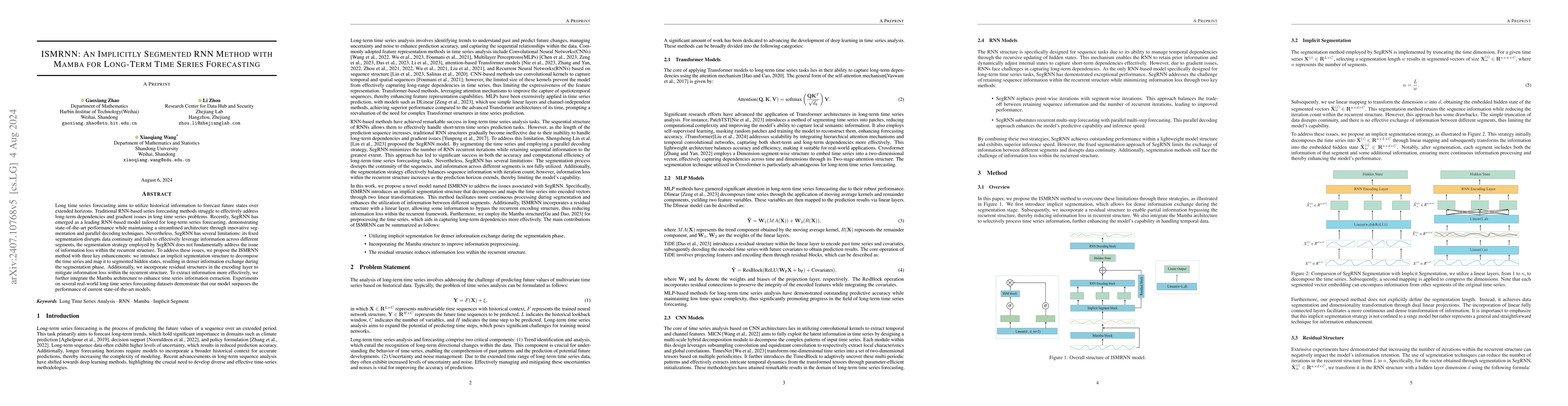 MSegRNN enhances the SegRNN model with a fine-tuned Mamba structure to select useful information, improving long-term time series forecasting performance through reduced iterative cycles and integrated inter-channel correlations. Empirical results show superior performance over existing models in long-term forecasting tasks.