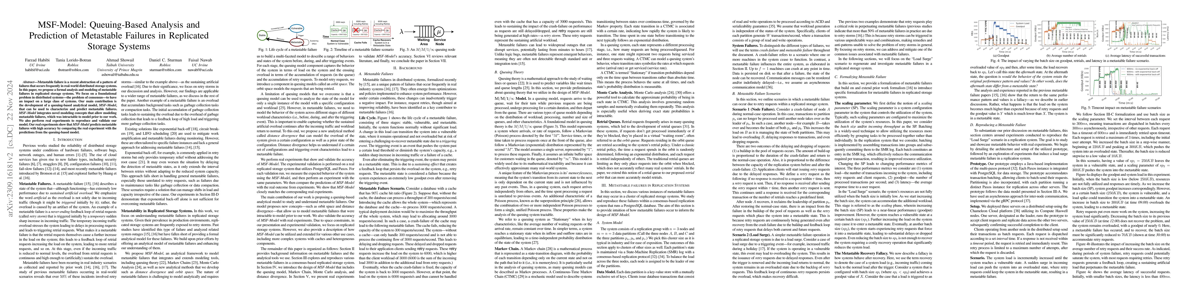 This paper proposes a queuing-based analytical model, MSF-Model, to characterize and predict metastable failures in replicated storage systems, focusing on consensus problems in distributed systems. Experiments validate the model's accuracy in predicting these failures.